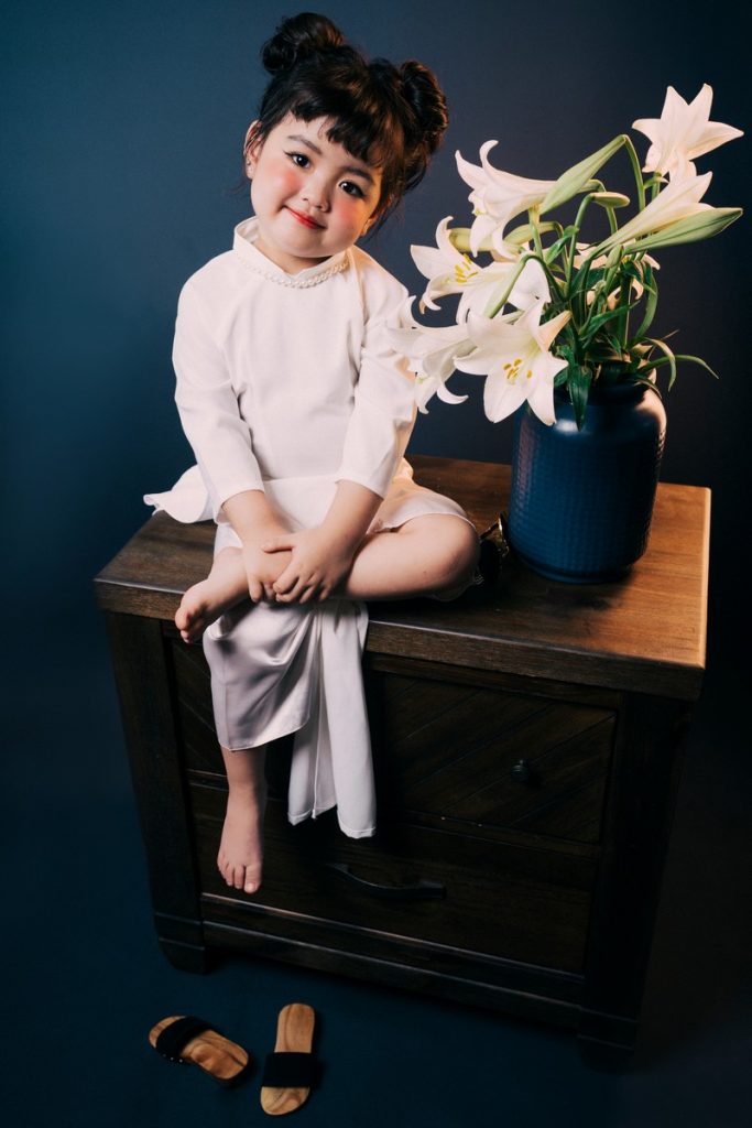 Cute hết nấc bộ ảnh cover tranh sơn dầu “thiếu nữ bên hoa huệ” của bé Cherry An Nhiên & photographer Lê Trần Đắc Ngọc