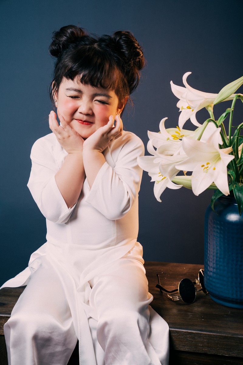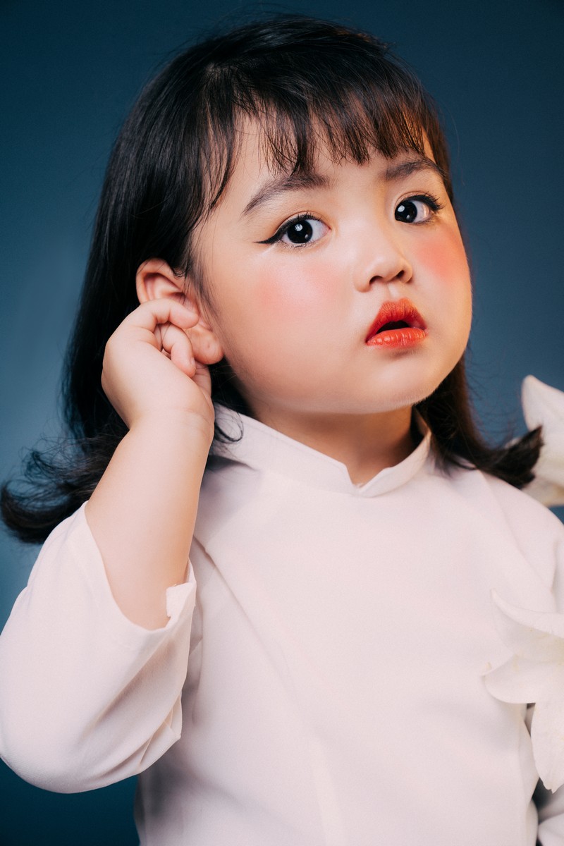 Đây không phải bộ ảnh đầu tiên mà Cherry chụp với áo dài nhưng trước đây con thường mặc áo dài trong các bộ ảnh nghệ thuật hay show diễn thời trang nên có thể nói rằng, bộ ảnh lần này vẫn mang một điều gì đó khác biệt với con. Nhiều mẹ thường lo lắng rằng con mặc áo dài sẽ bị già so với tuổi nhưng thực ra là trẻ con mặc áo dài cũng sẽ toát lên sự đáng yêu riêng, quan trọng là khi con chụp ảnh thì sắc thái biểu cảm, nét mặt của con như thế nào.”