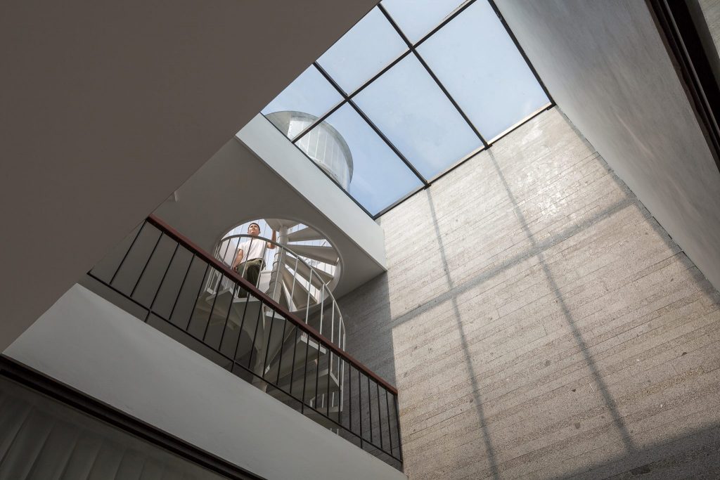 Hình thể của khu đất là một hình nhiều hướng có nhiều góc méo. Thông thường đây sẽ là bất lợi trong thiết kế nhưng các kiến trúc sư đã tận dụng nó và tạo nên lợi thế để làm cho không gian trở nên vuông vắn và dễ sử dụng hơn. Các góc méo được tận dụng tối đa để tạo ra các khoảng trống lấy ánh sáng và kết hợp với các không gian xanh. Hầu như các không gian chức năng chính luôn có tới hai mặt tiếp xúc với nguồn ánh sáng tự nhiên và được tiếp giáp với không gian xanh. Kết hợp trong không gian xanh luôn kèm theo chất liệu địa phương và tự nhiên làm cho dự án trở nên thêm phần đặc biệt: bức tường đá Granit ghép tạo sự liên hệ với các lớp đá xếp tầng trong tự nhiên.