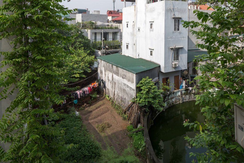 Ngôi nhà nằm trong khu đô thị cũ của thành phố Hà Nội với mật độ dân cư cao và khá hỗn độn. Bên cạnh đó, do vị trí ở khu vực trũng nhất của thành phố nên quanh năm bị ngập nước vào mùa mưa vì vậy tầng đầu tiên của ngôi nhà phải được nâng lên cao hơn mực nước ngập cao nhất hàng năm.