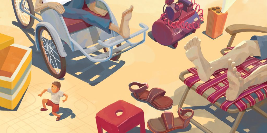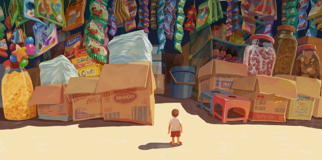 “Mình còn nhớ những ngày mình còn ở nhà trong hẻm, những lúc la cà, hay ở nhà 1 mình. Để vẽ sách này mình có tranh thủ về Việt Nam thăm nhà một đợt và nhờ bạn chở mình đi qua các đường phố hẻm cũ ở Quận 4, Quận 5, Quận 8 để lấy hình tham khảo. Chuyến đi đó mình được nhìn thấy các góc của Sài Gòn mà mình chưa từng được thấy, vừa lạ vừa quen mà mình vẫn nhớ đến tận bây giờ.”