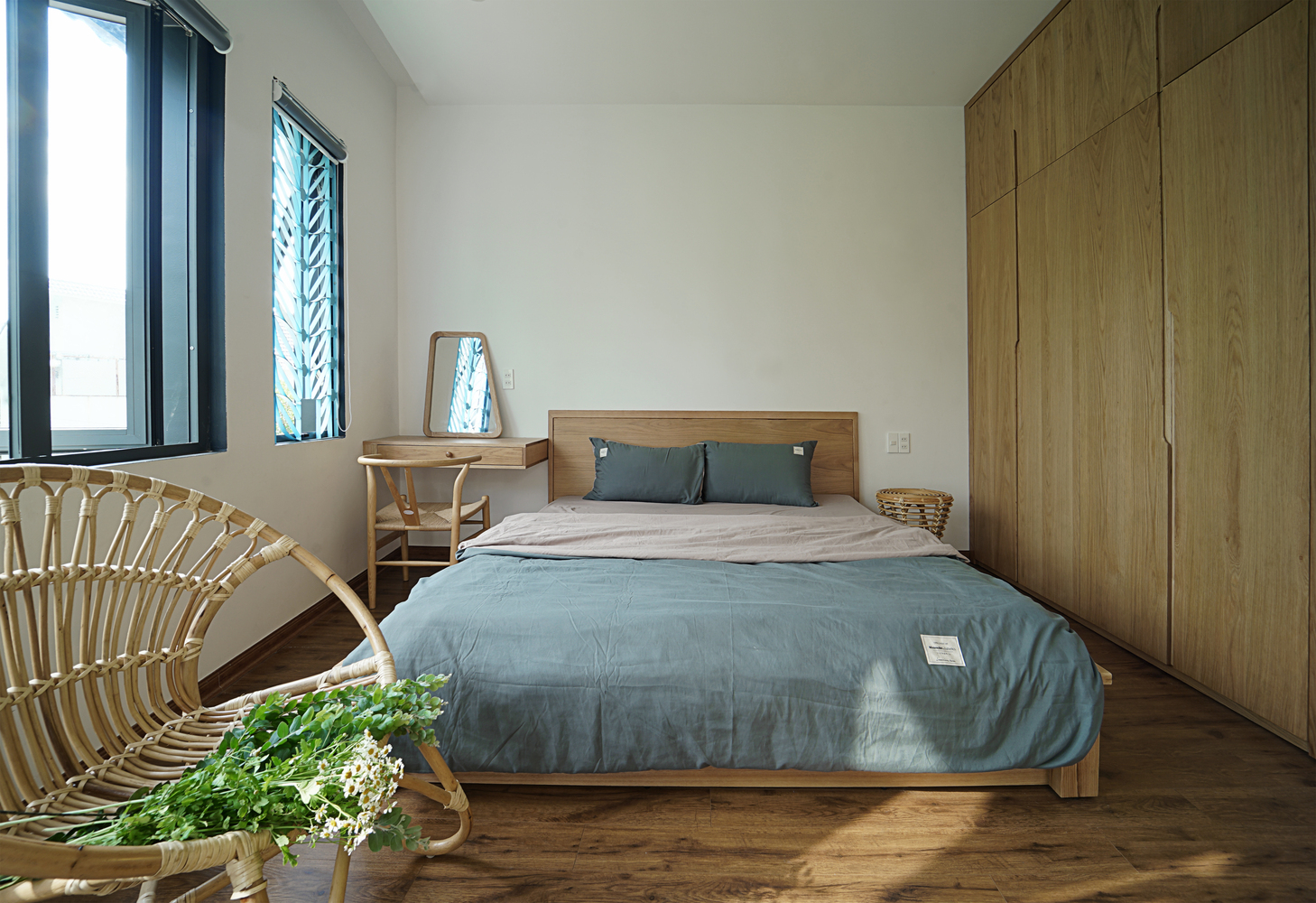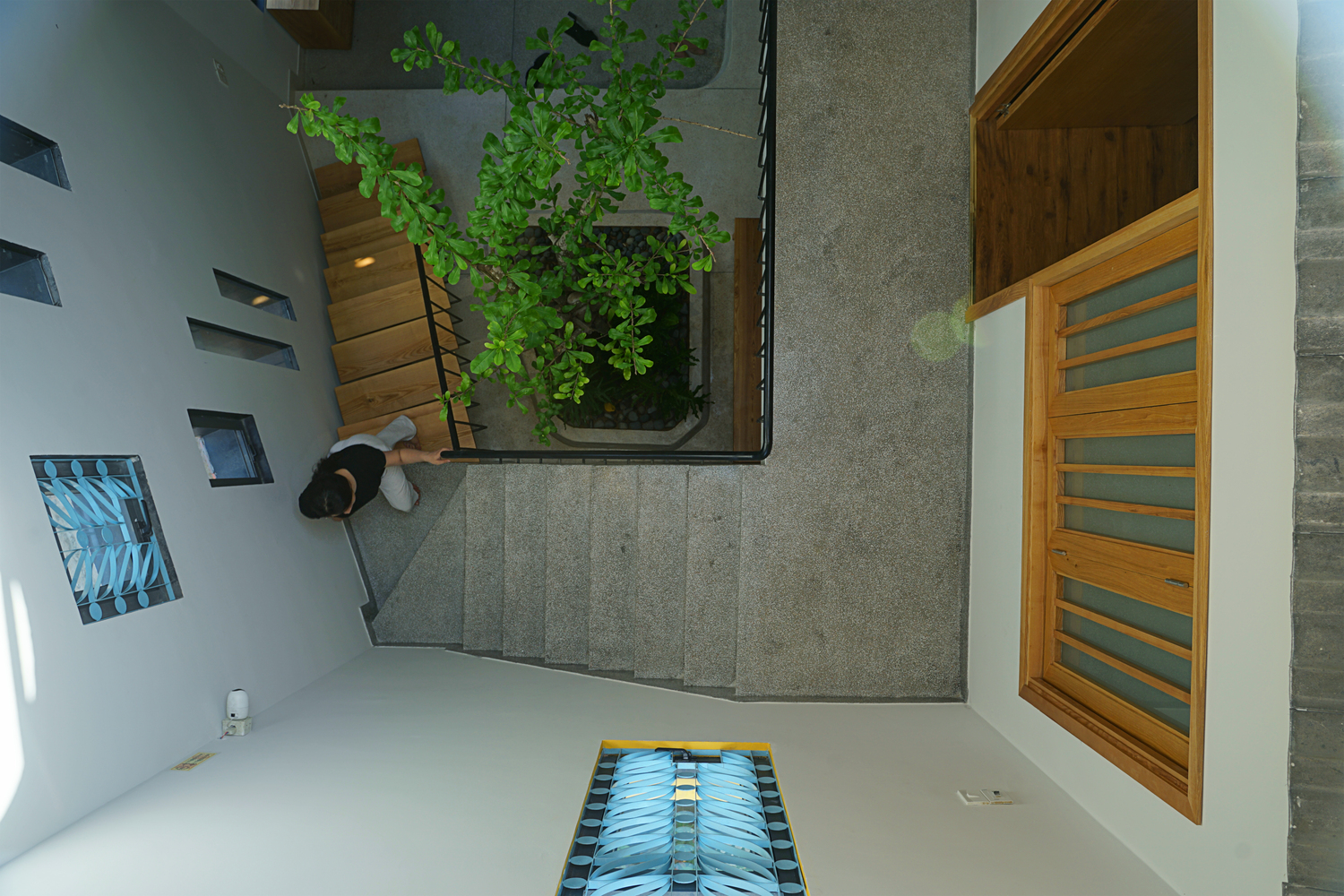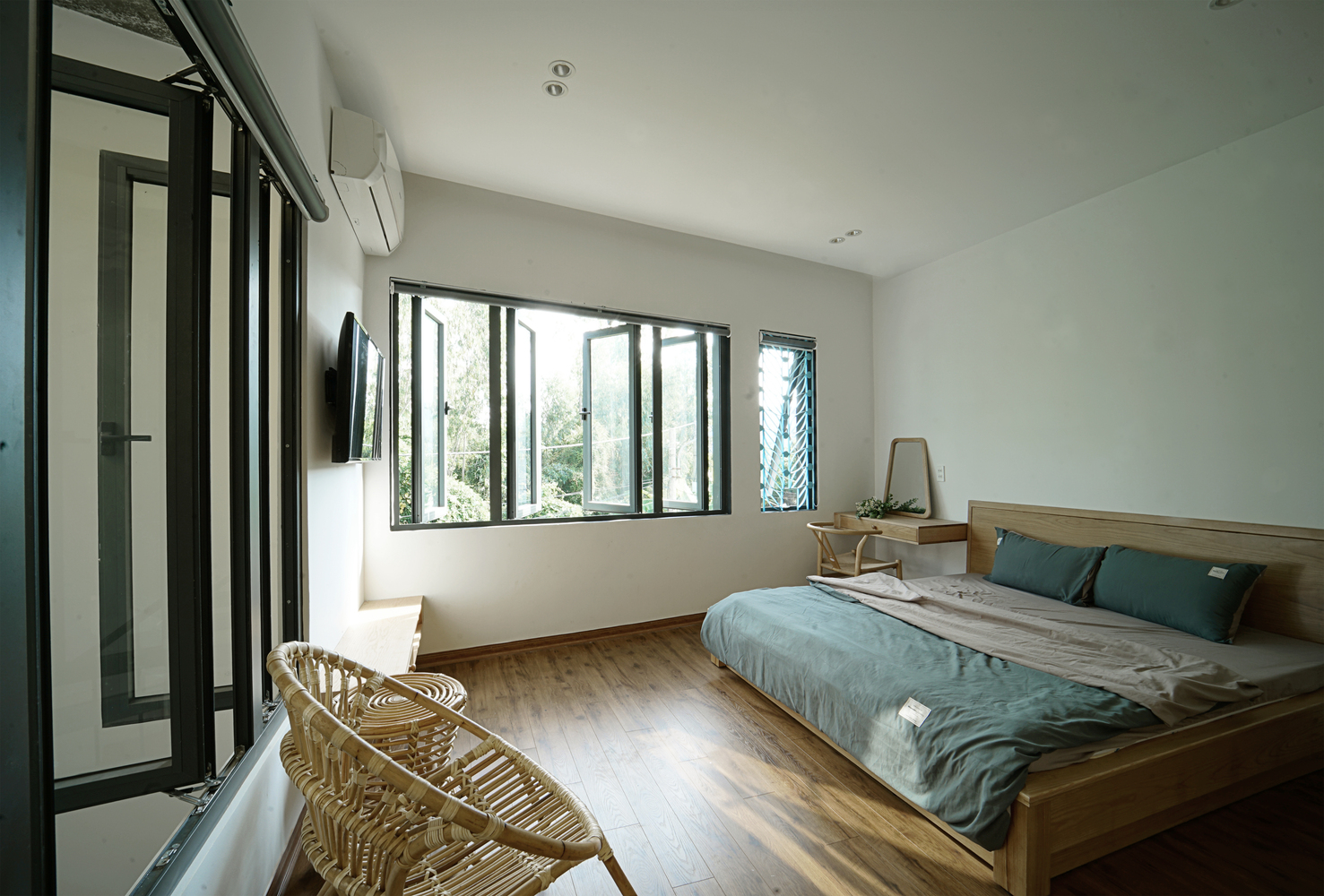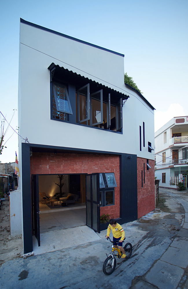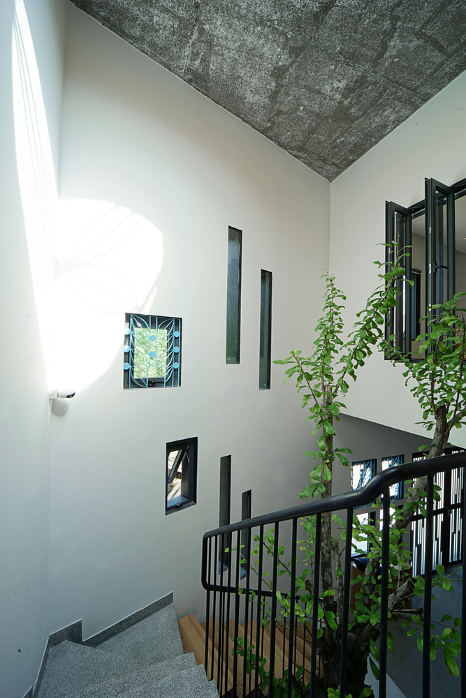 Điều kiện khí hậu khắc nghiệt của miền Trung đặt ra thách thức trong việc tiếp xúc với ánh sáng nhưng hạn chế nhiệt độ cao mà nó gây ra. Để giải quyết vấn đề này, ngoài việc sử dụng các vật liệu thô, màu sắc trung tính, ngôi nhà còn được bố trí các ô cửa nhỏ với cây xanh bao quanh khiến nó giống như một chiếc hộp điều hòa lớn.