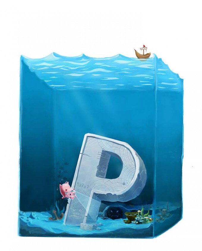 Nguyễn Tú: Sau khi Trọng chit giới thiệu sơ qua về dự án và mình ok tham gia thì hắn bảo: “Mày vẽ chữ P nhé, deadline là sáng chủ nhật gửi cho tao để tao tổng hợp”, xong rồi hắng lặn mất tăm :D. Đối với mình, một concept artist thì chữ cái nào cũng đều tạo cho mình rất nhiều cảm hứng để vẽ . Với chữ P mình nghĩ ngay đến từ Pig :D. thế là mình bắt đầu concept ý tưởng từ đó, một chú heo dễ thương và 1 câu chuyện nhỏ về chú: Life of P[ig], “câu chuyện kể về cuộc đời của ụt ịt [P], ụt ịt có 1 niềm đam mê cháy bỏng đó là khảo cổ. cậu dành cả đời để theo đuổi và nghiên cứu nền văn minh của giống loài …”. Mình muốn mỗi bức tranh đều có 1 câu truyện để người xem có thể khám phá , tìm hiểu chúng.