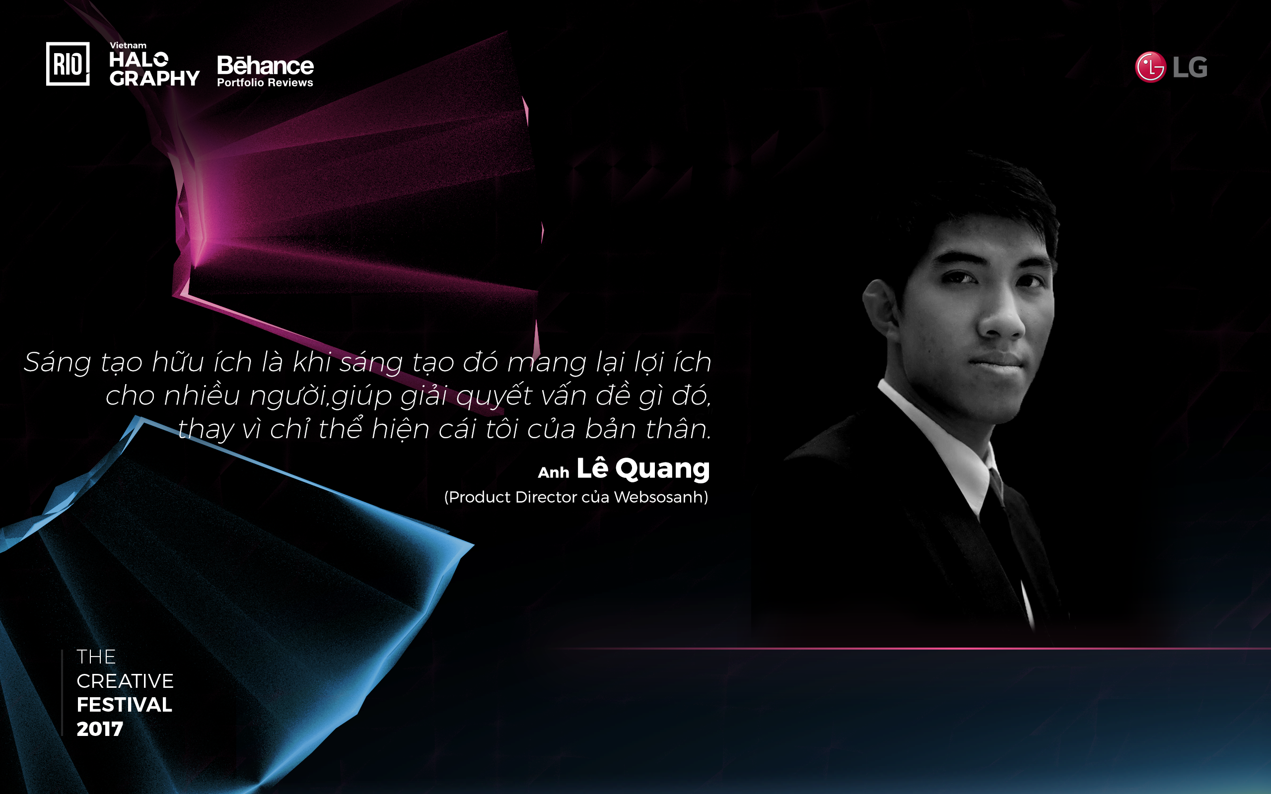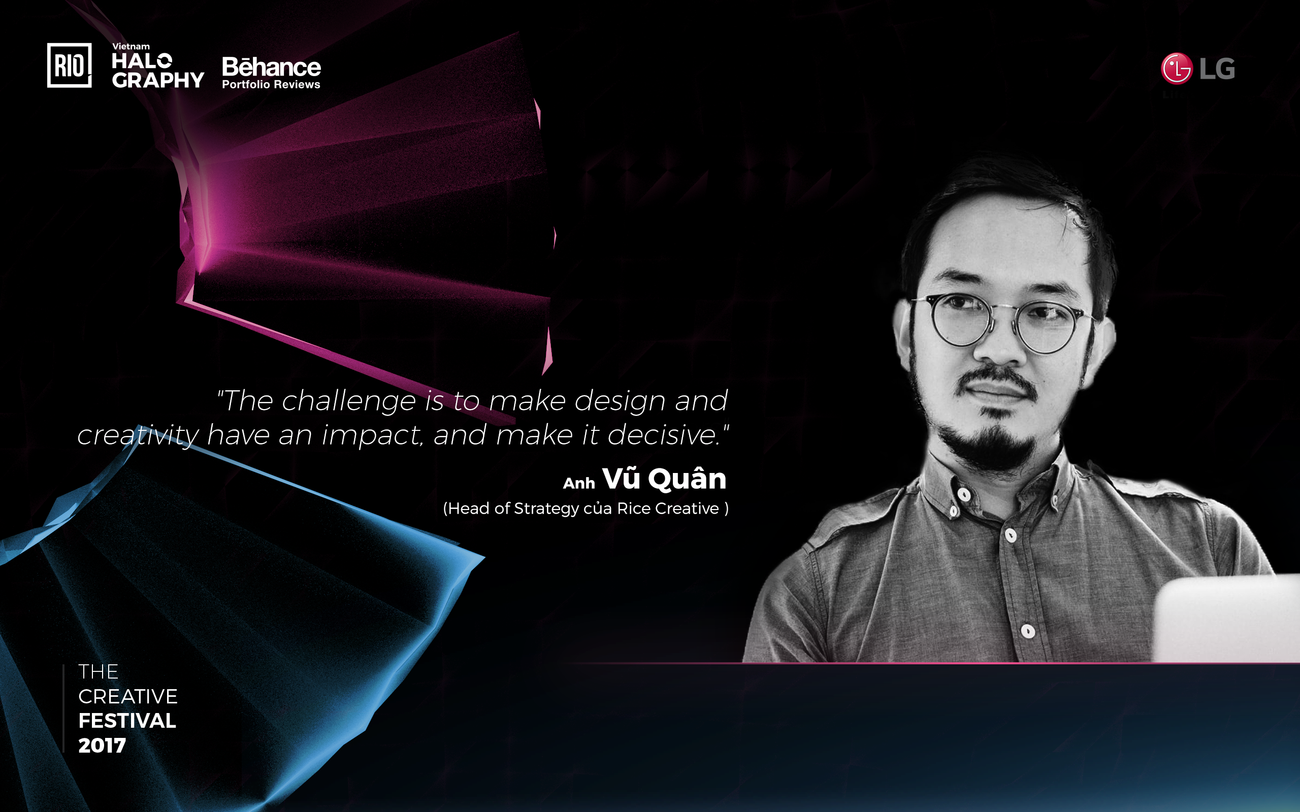 Vietnam Halography 2017 rất vui khi có sự đồng hành của anh với vai trò một cố vấn chuyên môn. Hi vọng sự xuất hiện của anh trong chương trình sẽ mang lại nhiều kiến thức thú vị về UX Design cũng như nguồn động lực mạnh mẽ cho các nhà thiết kế sáng tạo trẻ.