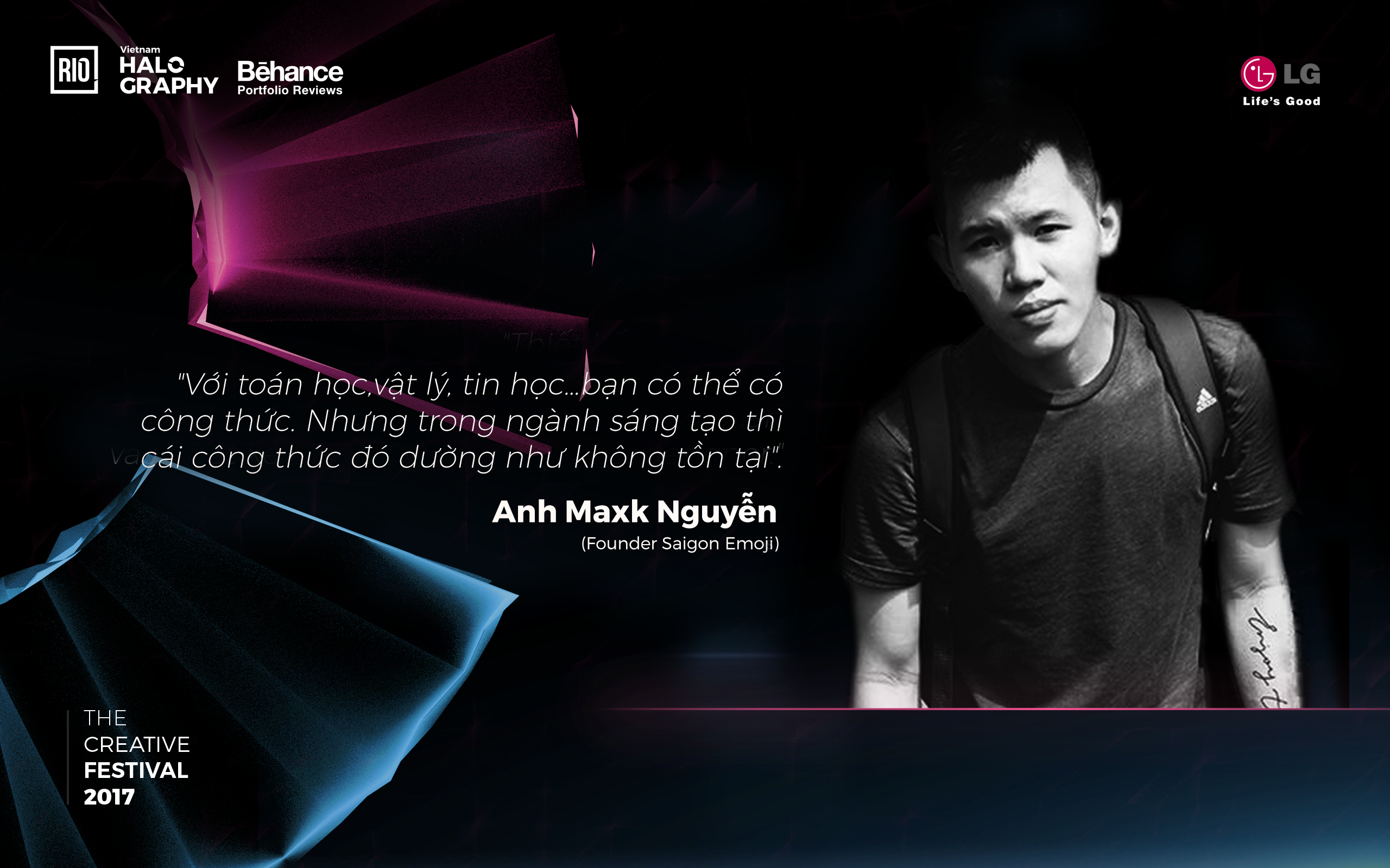 Vietnam Halography 2017 rất vui và vinh dự khi được đồng hành cùng anh với vai trò là cố vấn chuyên môn – diễn giả tại sự kiện. Quá trình hợp tác với hàng trăm thương hiệu cùng những thử nghiệm, trải nghiệm phong phú và cảm xúc đa dạng của anh chắc chắn sẽ là nguồn cảm hứng mạnh mẽ của các designer trẻ trong hành trình sáng tạo nghệ thuật.