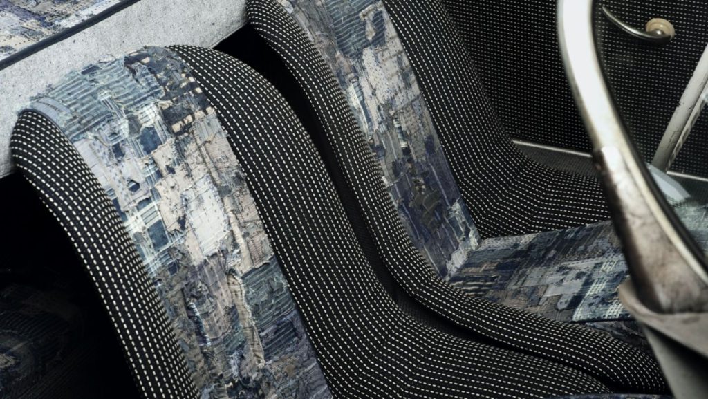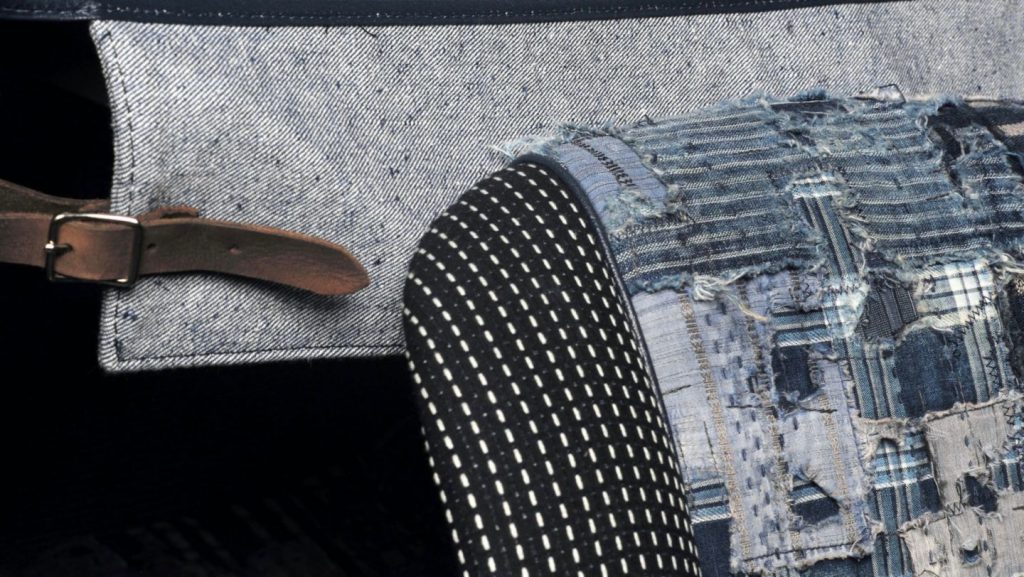 Phần mái của chiếc xe mui trần được phủ bằng lớp vải denim Nhật. Bên trong xe, ghế bọc cũng được kết hợp với vải bạt nhuộm chàm được may vá theo phong cách Sashiko, một loại hình thêu dệt truyền thống của Nhật Bản.