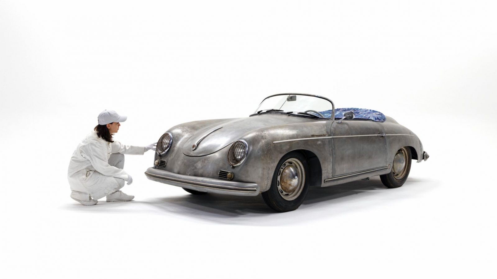 Daniel Arsham là một nghệ sĩ liên ngành người Mỹ nổi tiếng với các tác phẩm điêu khắc, kiến trúc, và sắp đặt vượt ra ngoài nền tảng nghệ thuật truyền thống của thế giới. Trong dự án mới nhất kết hợp với Porsche, Daniel Arsham đã lấy cảm hứng từ phong cách Wabi Sabi và quyết định tái tạo lại chiếc Porsche 356 Speedster năm 1955, mang khái niệm vẻ đẹp không hoàn mỹ của Nhật Bản lên chiếc xe thể thao đã gần 70 năm tuổi này. Kết quả là một chiếc xe tốc độ có vẻ ngoài mộc mạc cũ kỹ không hoàn hảo nhưng đầy mê hoặc lạ thường.