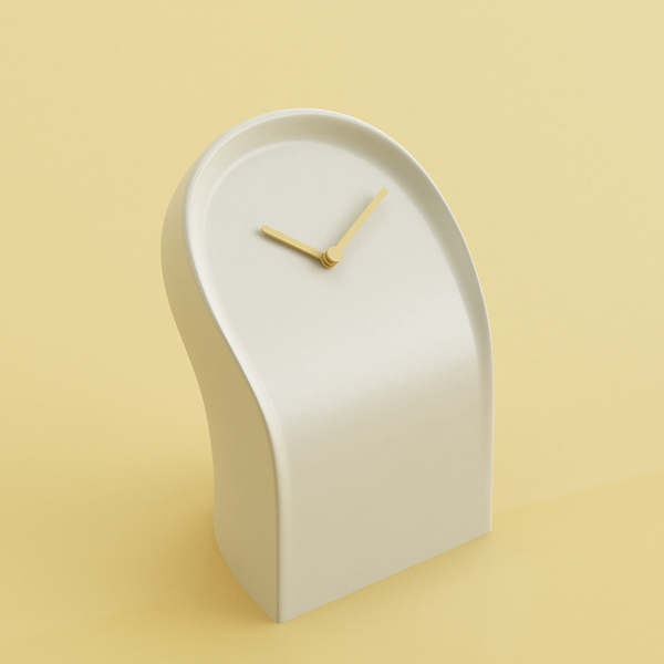 Một chiếc đồng hồ để bàn bằng gốm với thiết kế đơn giản nhưng nhiều cảm xúc, nhằm mang lại một mối quan hệ giữa con người và đồ vật.