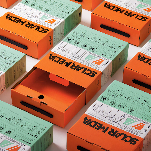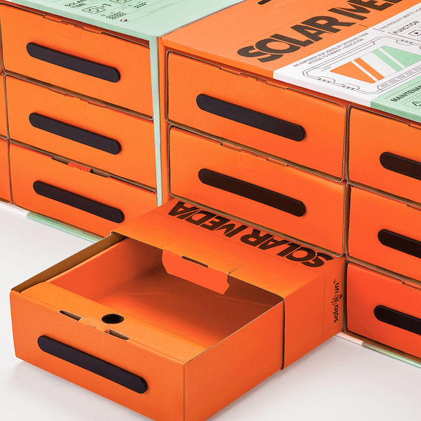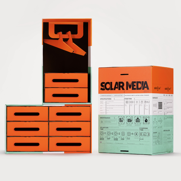 Solar Media là một dự án của các cơ sở chiếu sáng sử dụng năng lượng mặt trời, phục vụ cho châu Phi và các khu vực kém phát triển khác vốn không có điện. Dự án này phát triển các bao bì mọi kích cỡ với thiết kế có thể tái sử dụng sau khi sản phẩm được tiêu thụ. Bên trong hộp, phần giấy lượn sóng có thể dễ dàng được gấp lại thành móc treo quần áo. Bản thân chiếc hộp cũng được sử dụng như một ngăn kéo. Phần hộp bên ngoài khi được kết hợp 6 cái khác có thể biến thành một chiếc tủ quần áo chắc chắn hoặc không gian lưu trữ bất kỳ.