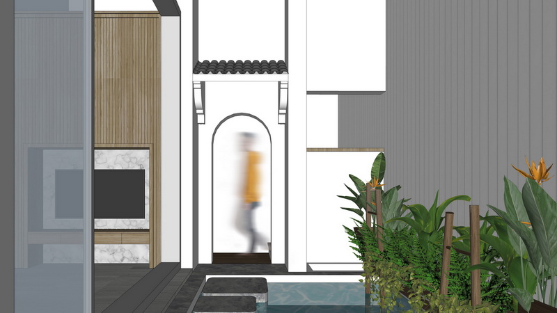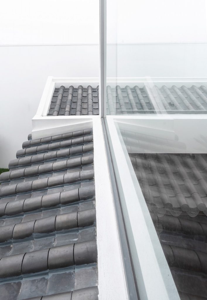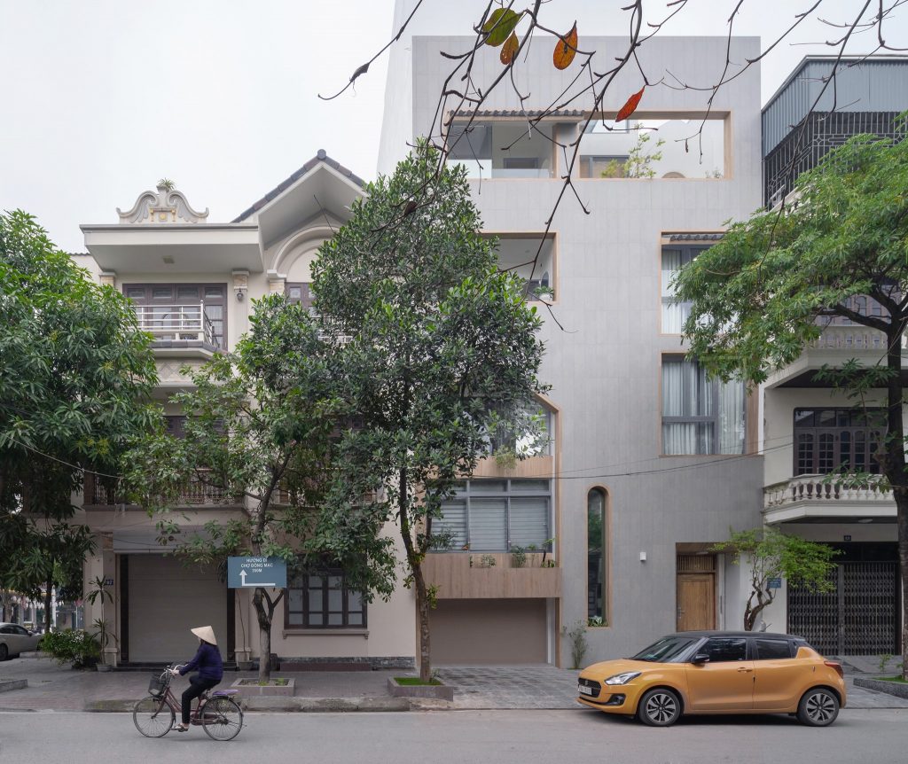 Landmak bắt đầu thiết kế bằng cách tạo ra một khối hộp với mặt tiền tối giản và bắt đầu “điêu khắc” các vị trí cửa sổ, lô gia để lấy ánh sáng cho các phòng bên trong. Được “thả” vào bên trong chiếc hộp tối giản và hiện đại này là các khối không gian truyền thống với nhiều mái nhà, cổng nhỏ, mái hiên trong lõi… như một tuyến phố được “cuộn” lại trong một chiều thẳng đứng.