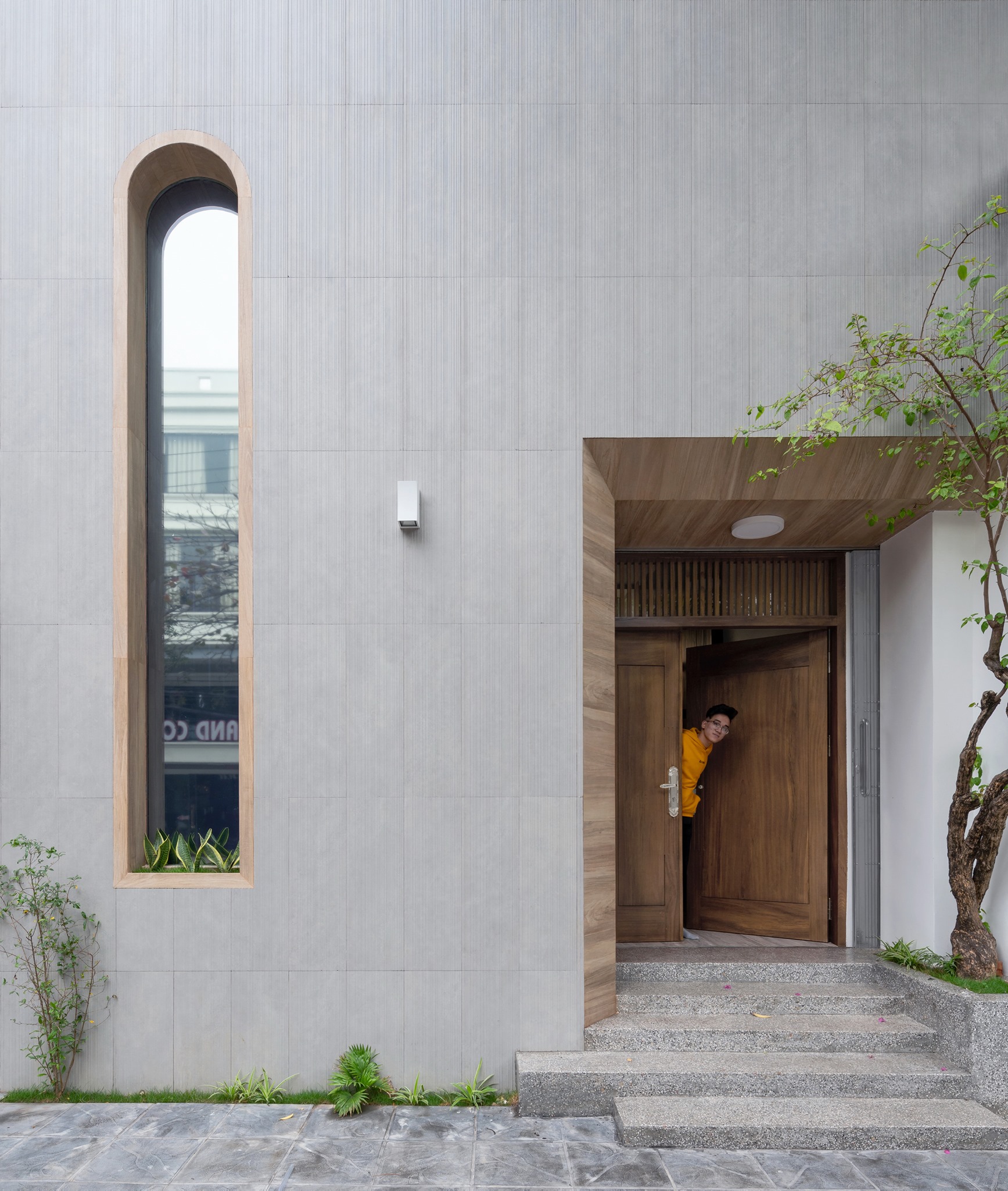 Landmak bắt đầu thiết kế bằng cách tạo ra một khối hộp với mặt tiền tối giản và bắt đầu “điêu khắc” các vị trí cửa sổ, lô gia để lấy ánh sáng cho các phòng bên trong. Được “thả” vào bên trong chiếc hộp tối giản và hiện đại này là các khối không gian truyền thống với nhiều mái nhà, cổng nhỏ, mái hiên trong lõi… như một tuyến phố được “cuộn” lại trong một chiều thẳng đứng.