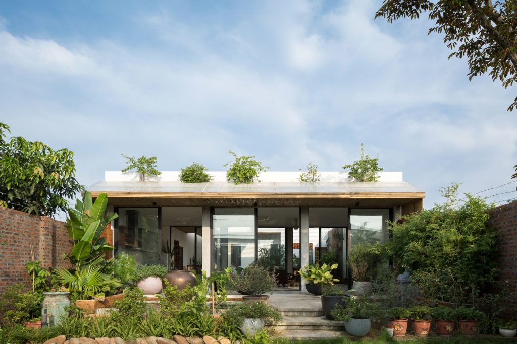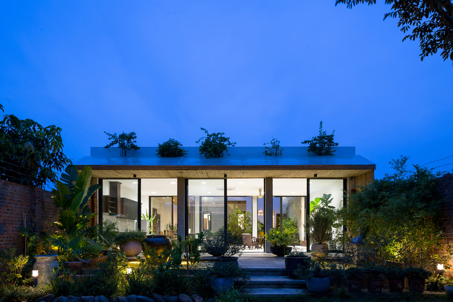 Dế House ở ngoại thành Hà Nội với tổng diện tích là 560m2, diện tích xây dựng 200m2, do 365 Design thiết kế và hoàn thiện.
