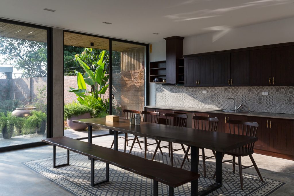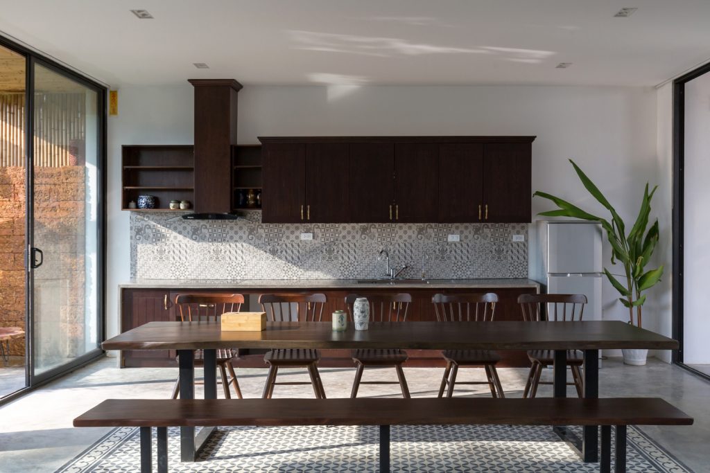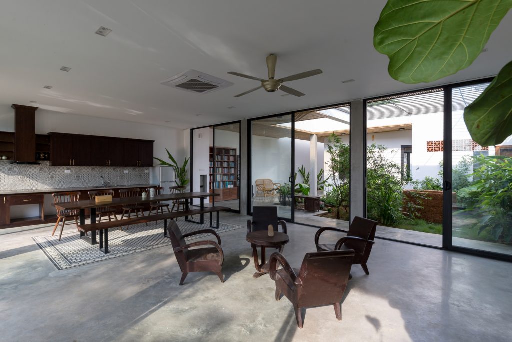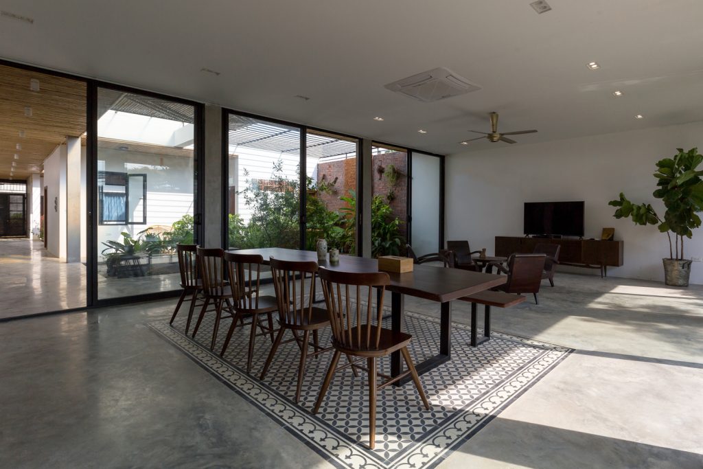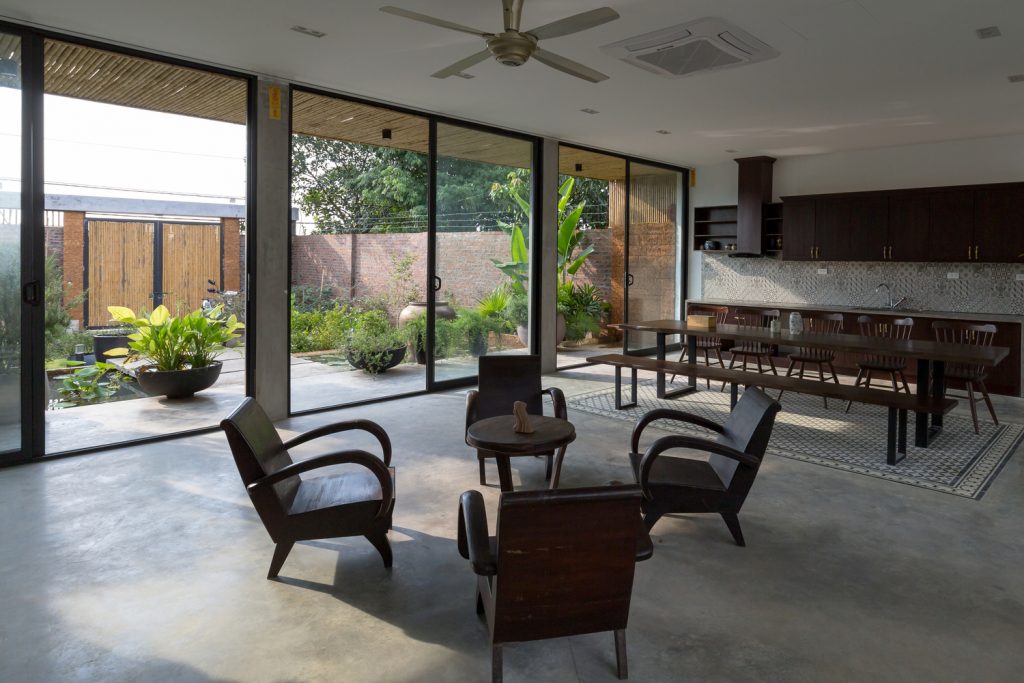 Trong quá trình xây dựng, KTS không thể tối ưu hóa vật liệu sử dụng do vị trí ở ngoại ô. Cuối cùng, vật liệu có sẵn từ nhà cung cấp địa phương được sử dụng để tạo ra một không gian kiến trúc hòa hợp với không gian xung quanh.