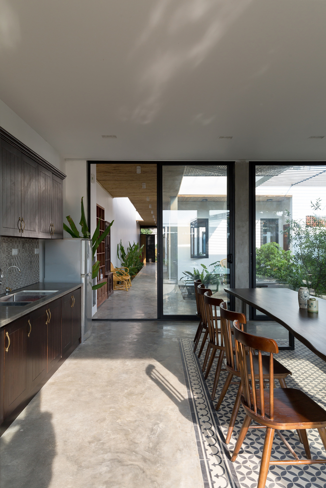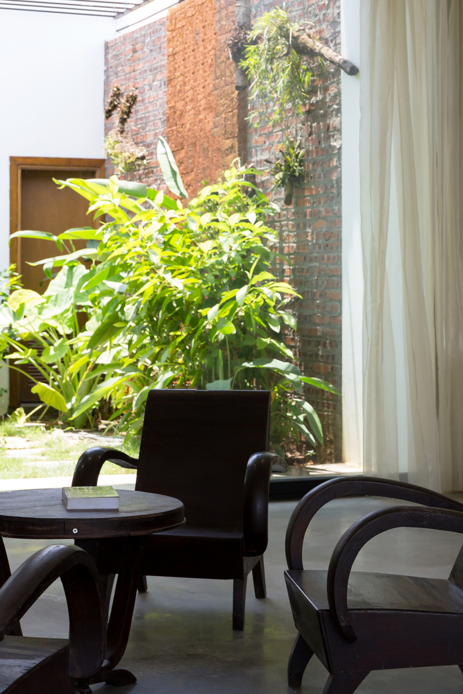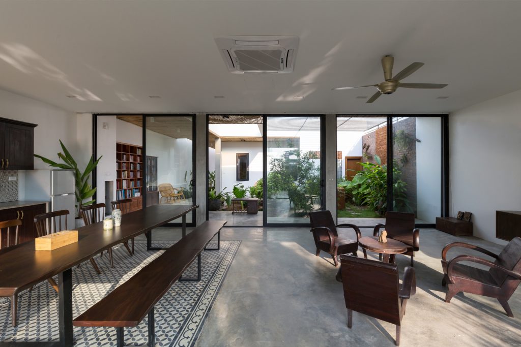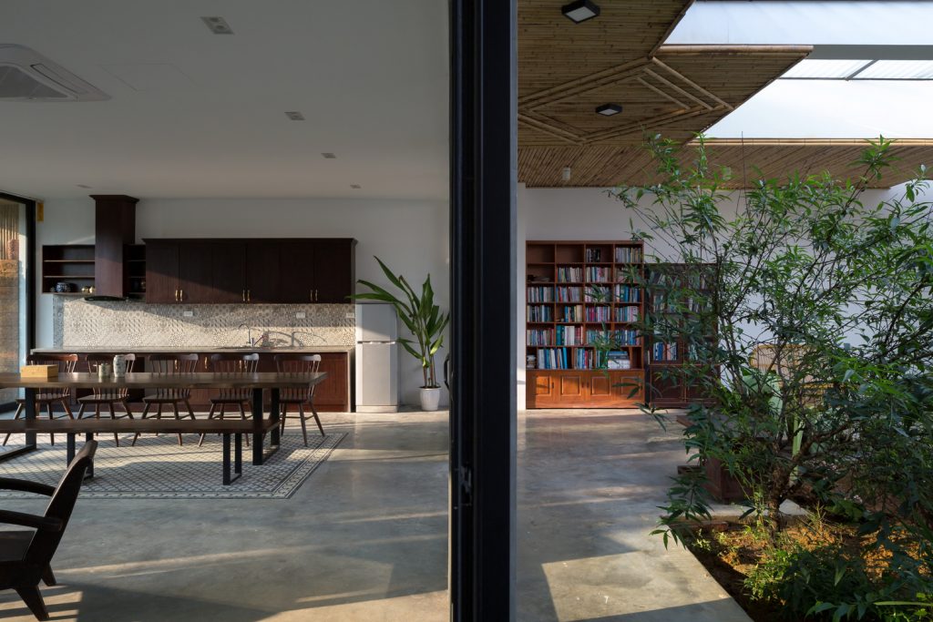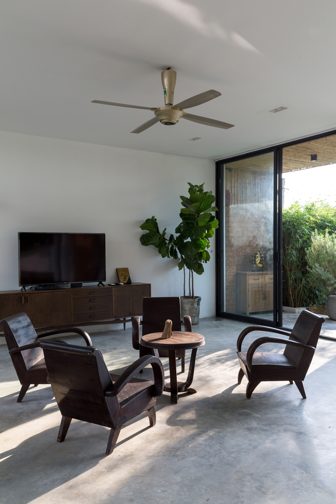 Trong quá trình xây dựng, KTS không thể tối ưu hóa vật liệu sử dụng do vị trí ở ngoại ô. Cuối cùng, vật liệu có sẵn từ nhà cung cấp địa phương được sử dụng để tạo ra một không gian kiến trúc hòa hợp với không gian xung quanh.
