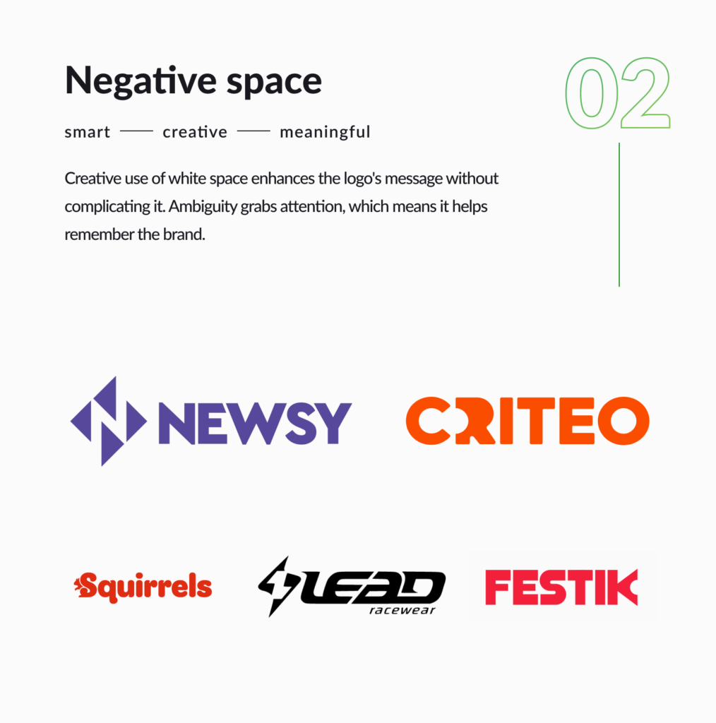Sử dụng không gian trắng (white space) một cách sáng tạo giúp tăng cường thông điệp của logo mà không làm nó trở nên phức tạp. Tính mơ hồ luôn thu hút sự chú ý của con người, điều này giúp cho thương hiệu được nhớ đến nhiều hơn.