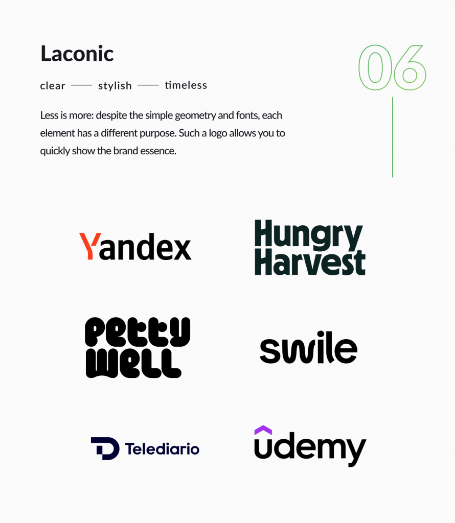 “Less is more”. Mặc dù phong cách này gồm các hình học và font chữ đơn giản, mỗi phần tử trong nó đều có một mục đích khác nhau. Logo được thiết kế với phong cách này cho phép bạn nhanh chóng thể hiện bản chất thương hiệu.
