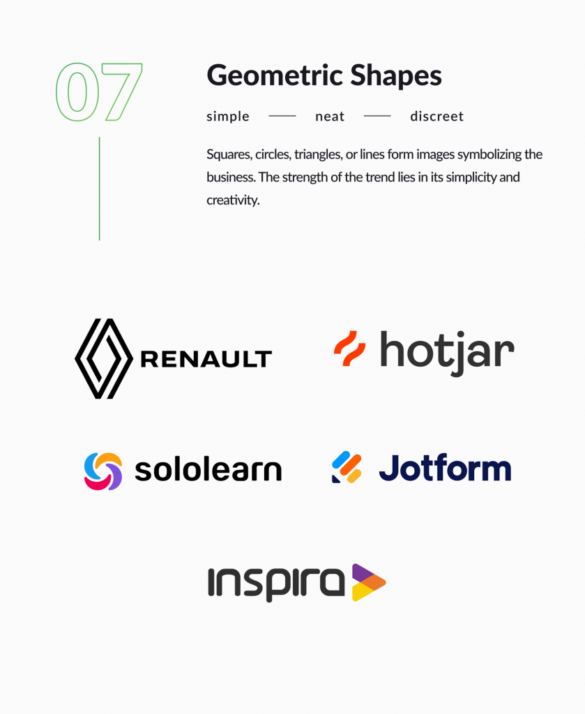 Kết hợp những dạng hình học như hình vuông, tròn, tam giác, hoặc đơn giản chỉ là các đường nét để tạo ra hình ảnh biểu trưng của thương hiệu. Sức mạnh của xu hướng thiết kế logo này nằm ở sự đơn giản và tính sáng tạo của nó.