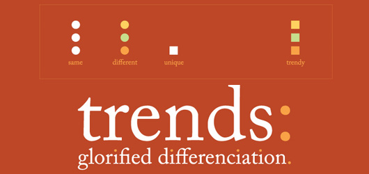 Như đã nói trên, một xu hướng có thể rất được ưa chuộng trong thời điểm hiện tại, nhưng sẽ gây rắc rối trong thời gian dài. Bởi vì quá nhiều designer theo đuổi, rủi ro cao là bạn sẽ bị đánh cấp ý tưởng. Xu hướng sẽ mang đến thuận lợi chỉ khi khách hàng chỉ rõ phong cách mà bạn nên thiết kế. Nhưng nếu mẫu thiết kể đó không độc đáo và ấn tượng bạn sẽ làm mất cơ hội của mình.
