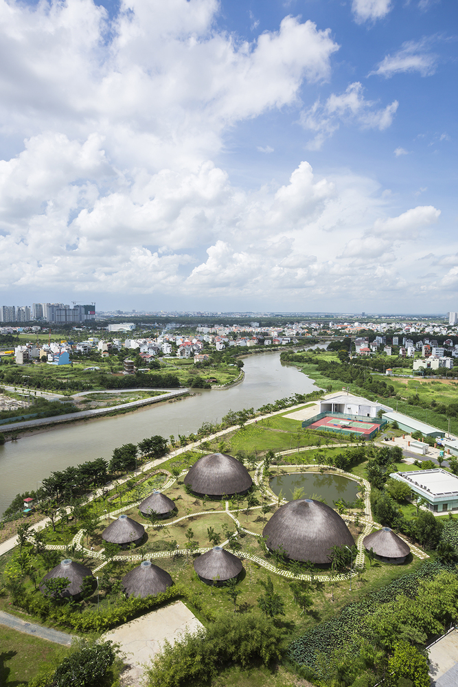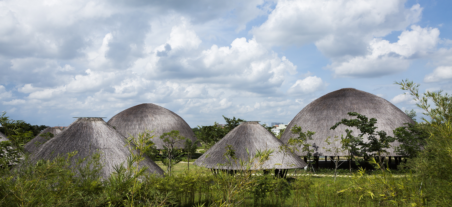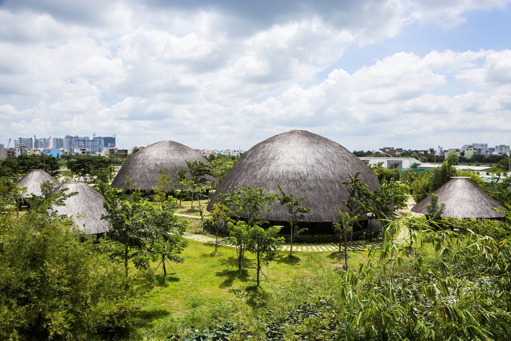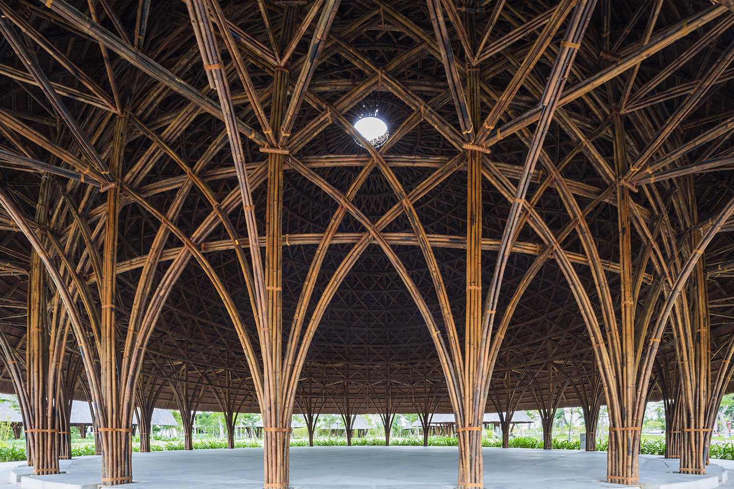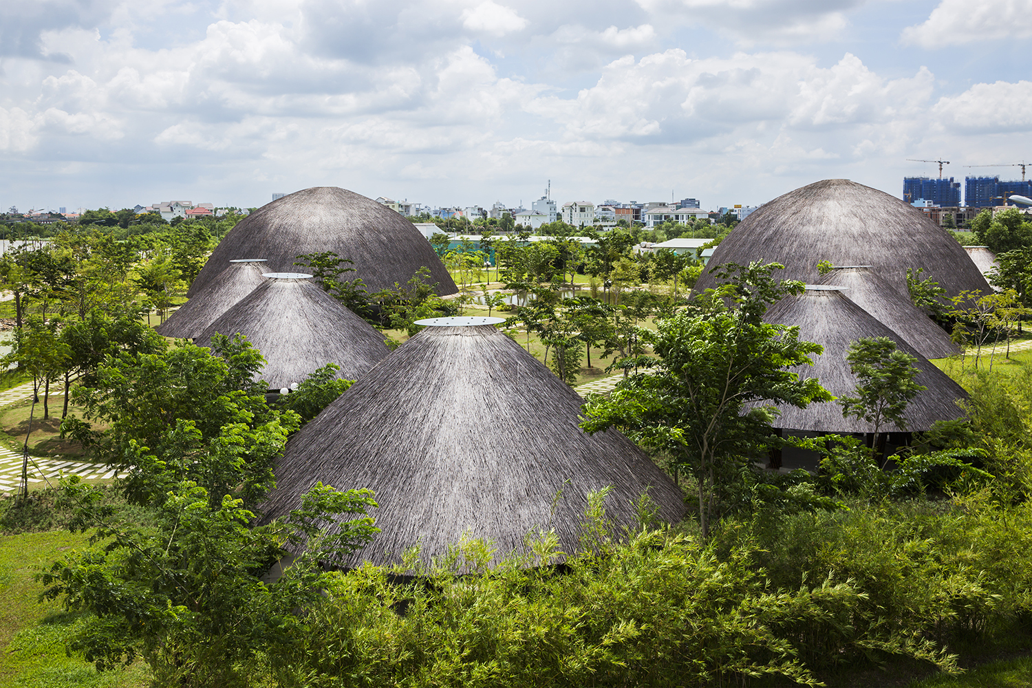Hai mái vòm lớn được tạo ra bởi cấu trúc hoàn toàn bằng tre với đường kính 24m và cao 12,5m, được lấy cảm hứng từ chiếc bội tre truyền thống dùng để ụp gà. Sáu gian nhà bằng tre nhỏ hơn có hình dáng như những chiếc ô, đường kính 11m, cao 7m. Công trình này được thực hiện bởi những người thợ lành nghề đan từng khúc tre tại chỗ.