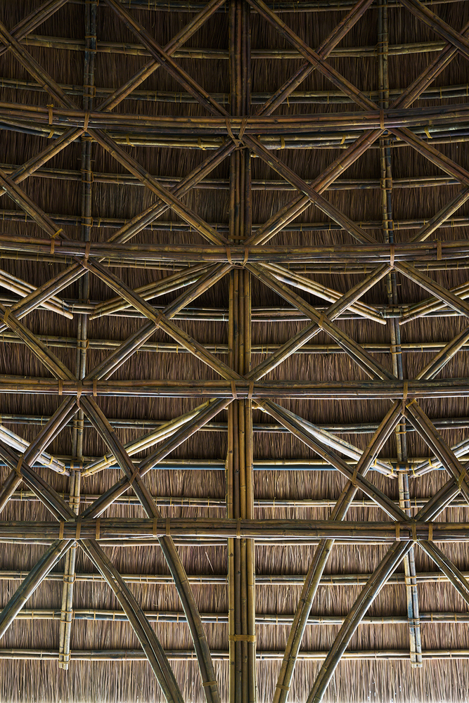 Các gian lớn là cấu trúc mái vòm hai lớp. Lớp mái bên ngoài nhô ra khỏi cấu trúc giống như cái rổ bên trong để tạo ra những mái hiên sâu, bảo vệ toàn bộ cấu trúc tre khỏi ánh nắng gay gắt và lượng mưa lớn. Bất kể hình dạng mái che như thế nào, không gian bên trong không cần ánh sáng nhân tạo cho các hoạt động ban ngày vì đã có giếng trời và vùng ngoại vi mở cung cấp đủ ánh sáng. Giếng trời cũng có chức năng xả khí nóng từ đỉnh mái vòm ra ngoài trong khi gió sông mát mẻ thổi sâu vào trong khu vực.