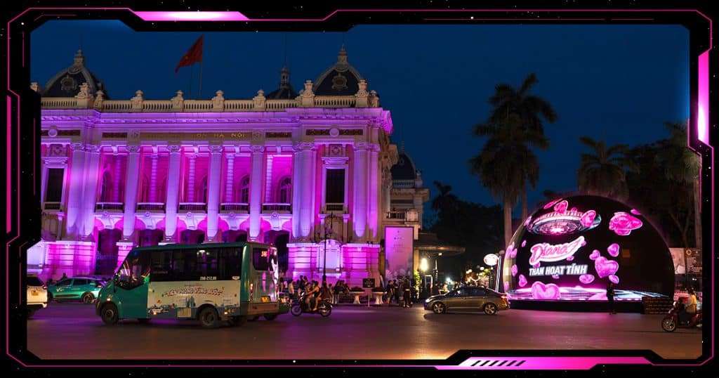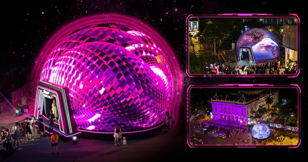 Trong đó, điểm nhấn khiến giới trẻ Sài thành và Hà thành xuýt xoa không ngừng đó là “siêu cầu vũ trụ” với kích thước khổng lồ, chiếu sáng lấp lánh giữa trời đêm. Lấy cảm hứng từ quả cầu Sphere huyền ảo biểu tượng của Las Vegas, siêu cầu của Diana Than Hoạt Tính có kích thước cực “khủng” bao phủ 360 độ với hệ thống LED phát quang cả bên trong lẫn bên ngoài. Siêu cầu này cho người tham gia trải nghiệm thị giác mãn nhãn, như lạc trong một thành phố Las Vegas phồn hoa thu nhỏ giữa lòng đô thị.