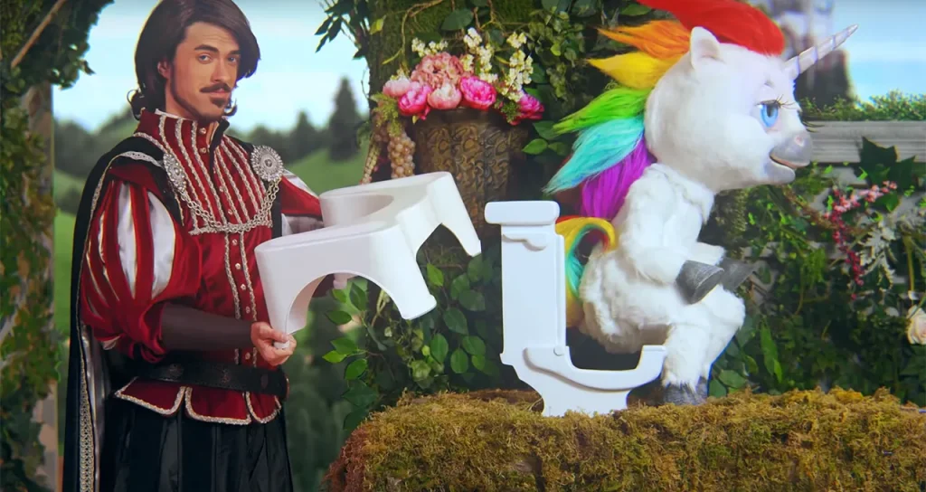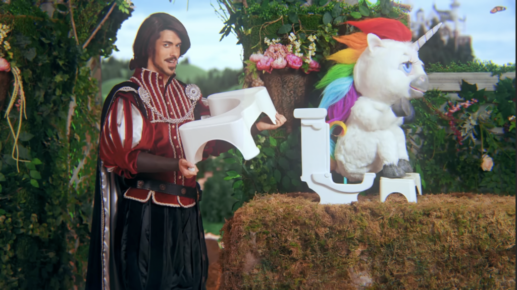 Vào năm 2015, một chiến dịch quảng cáo mang tên “This Unicorn Changed the Way I Poop” (Tạm dịch: chú kỳ lân này đã thay đổi cách tôi đi nặng) do thương hiệu Squatty Potty thực hiện đã bỗng chốc trở thành hiện tượng viral toàn cầu. Một video dài hơn 3 phút, nhưng đủ sức làm rung chuyển cả ngành… bệ xí.