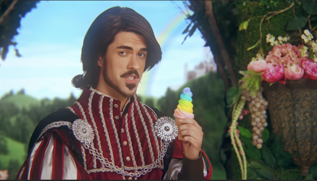 Video mở ra với hình ảnh một hoàng tử Anh cổ điển, ngồi cạnh một… con kỳ lân biết “thả kem” kim tuyến. Nghe qua có vẻ quái lạ, nhưng đó chính là chìa khóa của thành công: biến chuyện đi nặng – điều vốn ngại nói thành một màn trình diễn dễ thương, hài hước, và cực kỳ dễ nhớ.