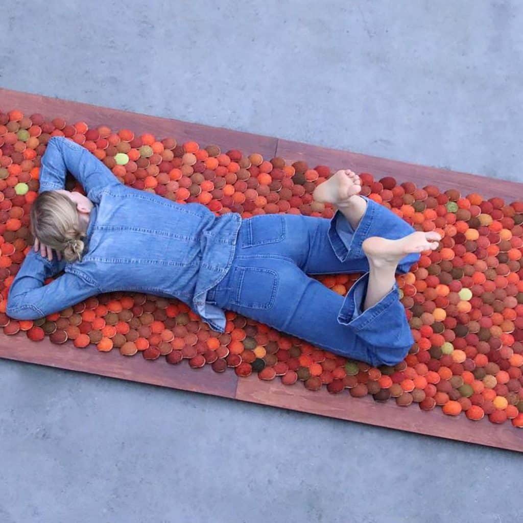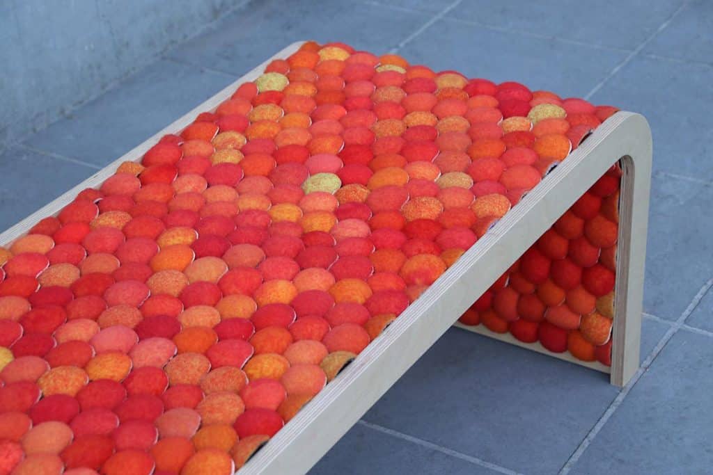 Thử tưởng tượng những quả bóng tennis được đánh bởi những tay vợt chuyên nghiệp xuất hiện phòng khách của bạn? Để làm được điều này, cô thu thập những quả bóng tennis không sử dụng được và lắp ráp chúng để tạo ra những chiếc ghế bành, ghế đẩu và những đồ nội thất khác thường khác.