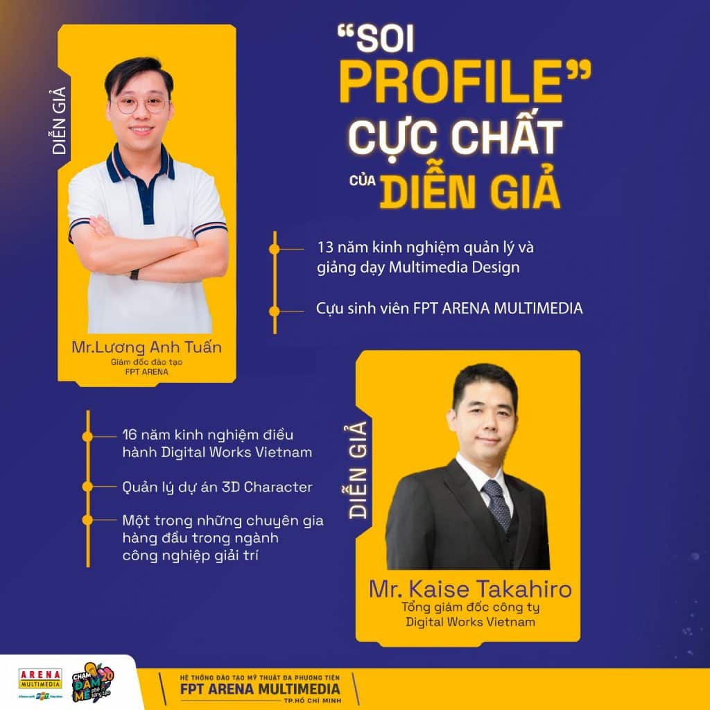 Tại đây, ngoài 3 diễn giả khách mời đặc biệt của các trạm trước, Talkshow còn có sự góp mặt của Mr Kaise Takahiro – Tổng giám đốc Digital Works và thầy Lương Anh Tuấn – Giám đốc đào tạo FPT Arena Multimedia TP.HCM với hơn 13 năm trong nghề.