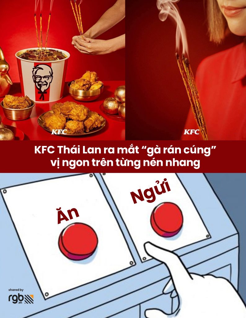 Nhân dịp năm mới, KFC Thái Lan ra mắt một ý tưởng độc đáo nhằm khơi dậy một phong cách thờ cúng mới vào năm 2023. Cư dân mạng comment vui về chiến dịch này là “vị ngon trên từng nén nhang”.