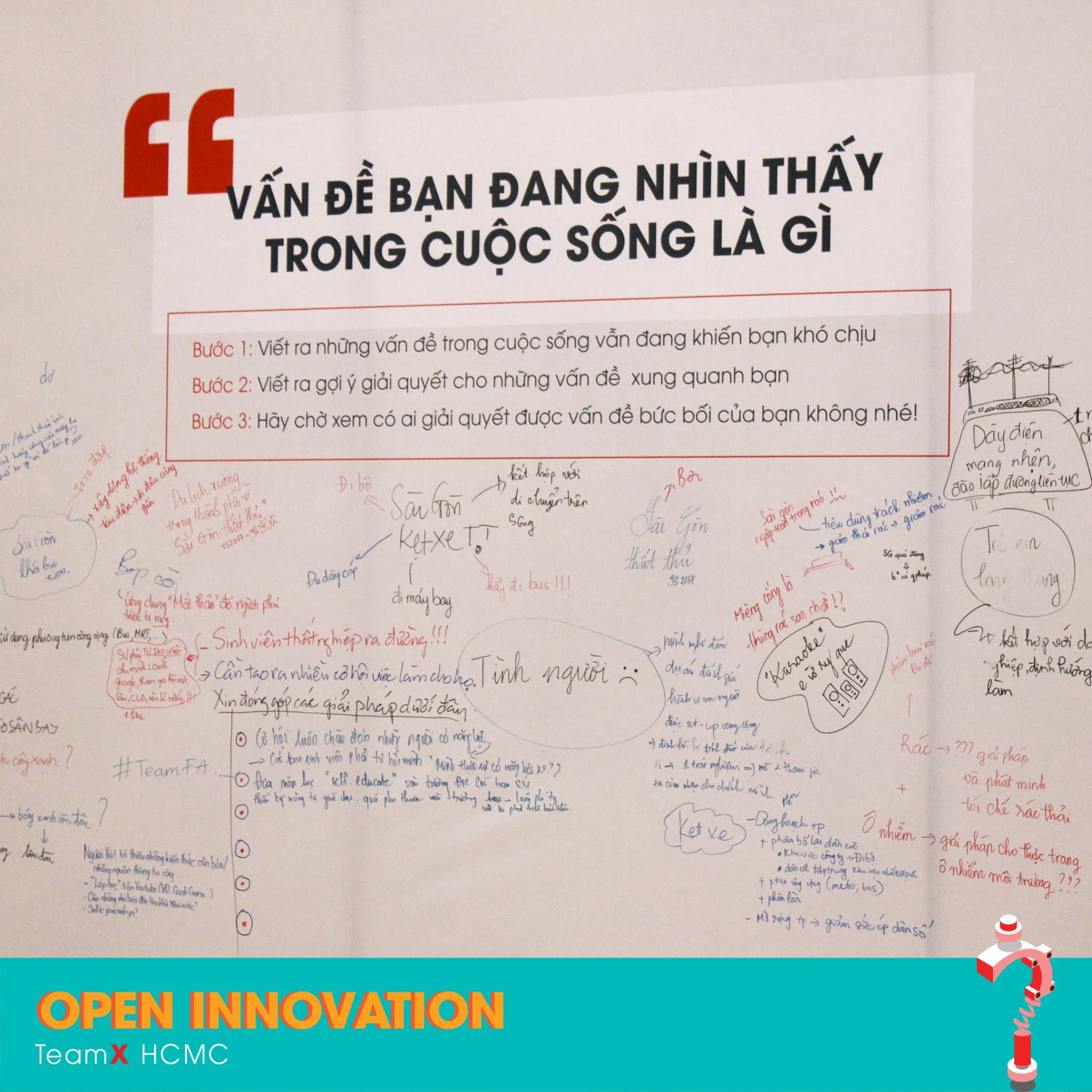 Vào ngày 15 tháng 1 năm 2017, TeamX HCMC xin hân hạnh mang đến Sự kiện Open Innovation 2017 với thông điệp “Dấu chấm hỏi khơi nguồn cải tiến” tại SOUL MUSIC AND PERFORMING ARTS ACADEMY | số 214-216, đường Pasteur, quận 3, TP.Hồ Chí Minh với mong muốn đưa khái niệm cải tiến đến gần hơn với cộng đồng người trẻ.