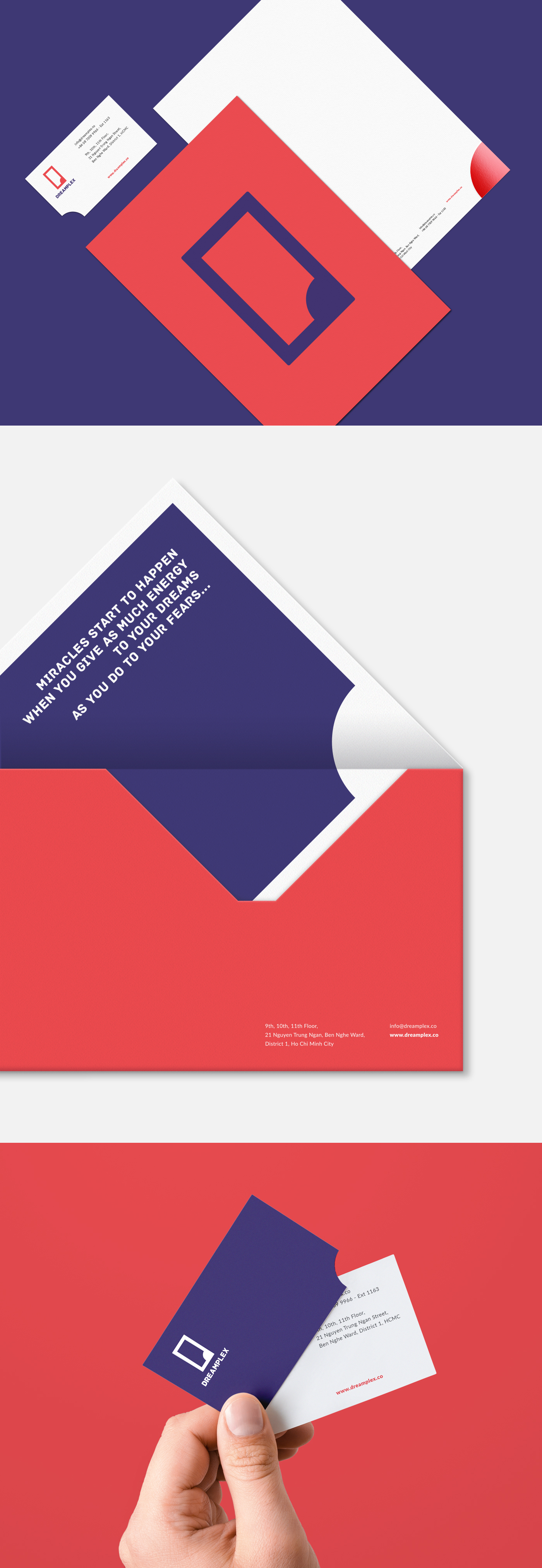 Trong đó, bộ nhận diên thương hiệu Dreamplex do Rabbat Creative thiết kế đã góp phần thể hiện sự năng động và linh hoạt mà Dreamplex mang lại cho người dùng, trao gửi hi vọng tạo ra một không gian làm việc chuyên nghiệp và độc lập, tăng sự tương tác giữa mọi người với nhau trong chính đội ngũ sáng tạo.