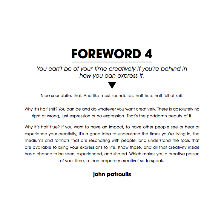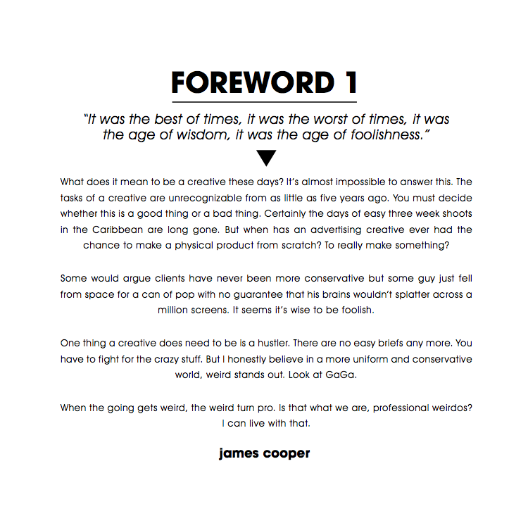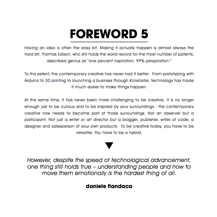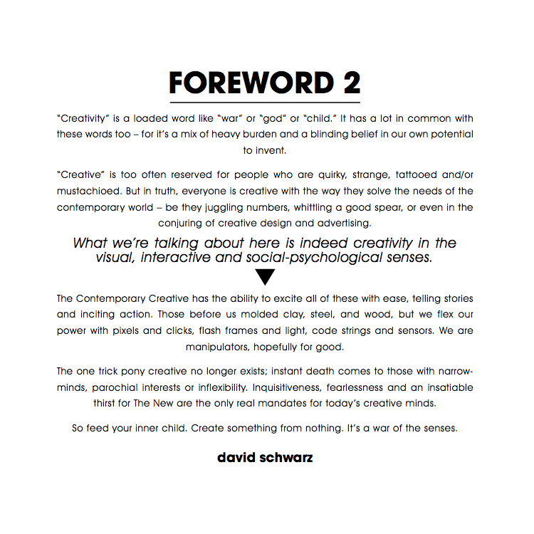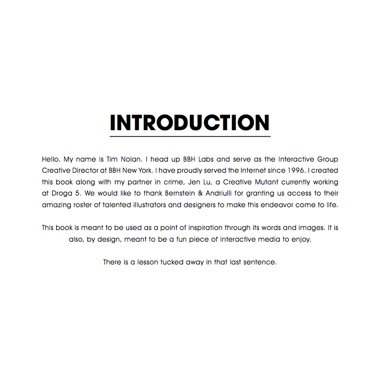 Tim Nolan – giám đốc sáng tạo của công ty quảng cáo tương tác BBH New York đã hợp tác với Jen Lu từ công ty quảng cáo Droga 5 để đưa ra ý tưởng, thiết kế và phát triển cuốn sách tên “The ABCs of Contemporary Creatives”