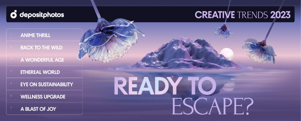 Với tiêu đề ‘Ready to Escape?’, 2023 được Depositphotos dự đoán sẽ là một năm đầy thử nghiệm và khám phá với 7 xu hướng sáng tạo được chọn ra.