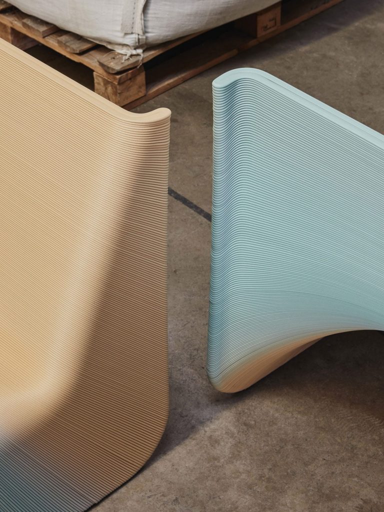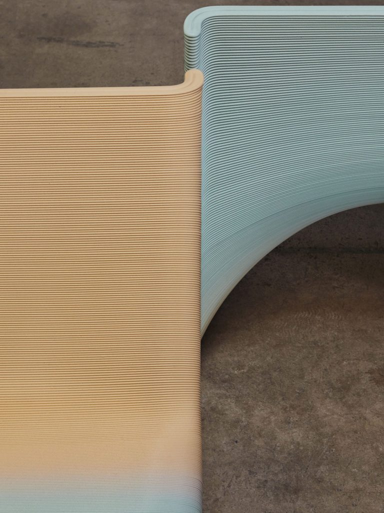 Ngoài việc giảm thiểu chất thải, quá trình này cũng mang đến cho thiết kế một kết cấu đặc biệt và độ đổi màu pastel xinh đẹp, mà mỗi chiếc ghế sẽ không hề giống nhau hoàn toàn. Sakkas và Setaki so sánh hiệu ứng xúc giác của các lớp in 3D giống như các vòng của cây hoặc tĩnh mạch của đá cẩm thạch.