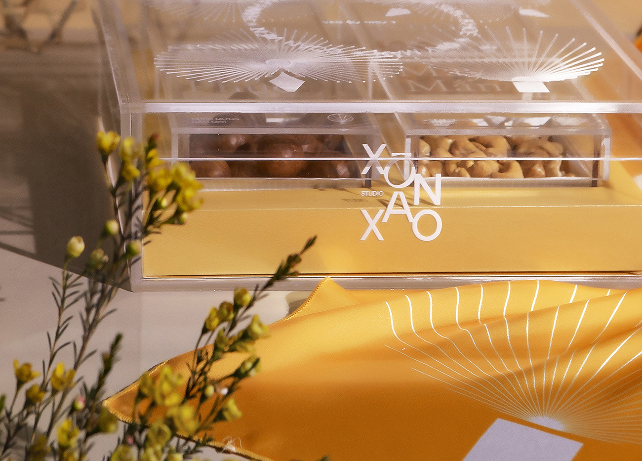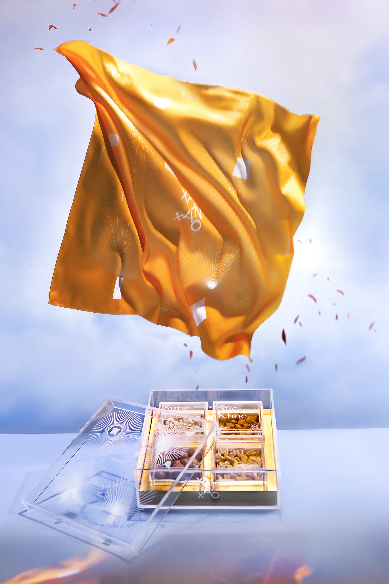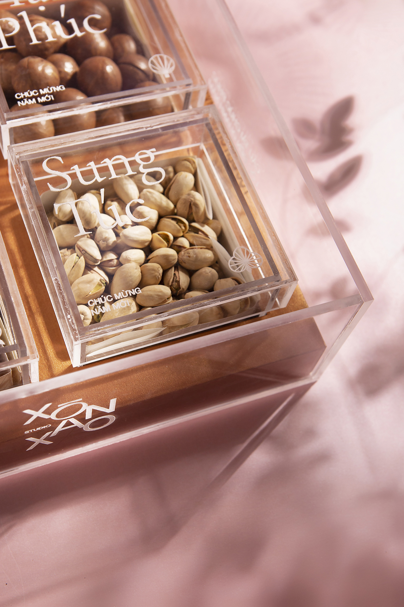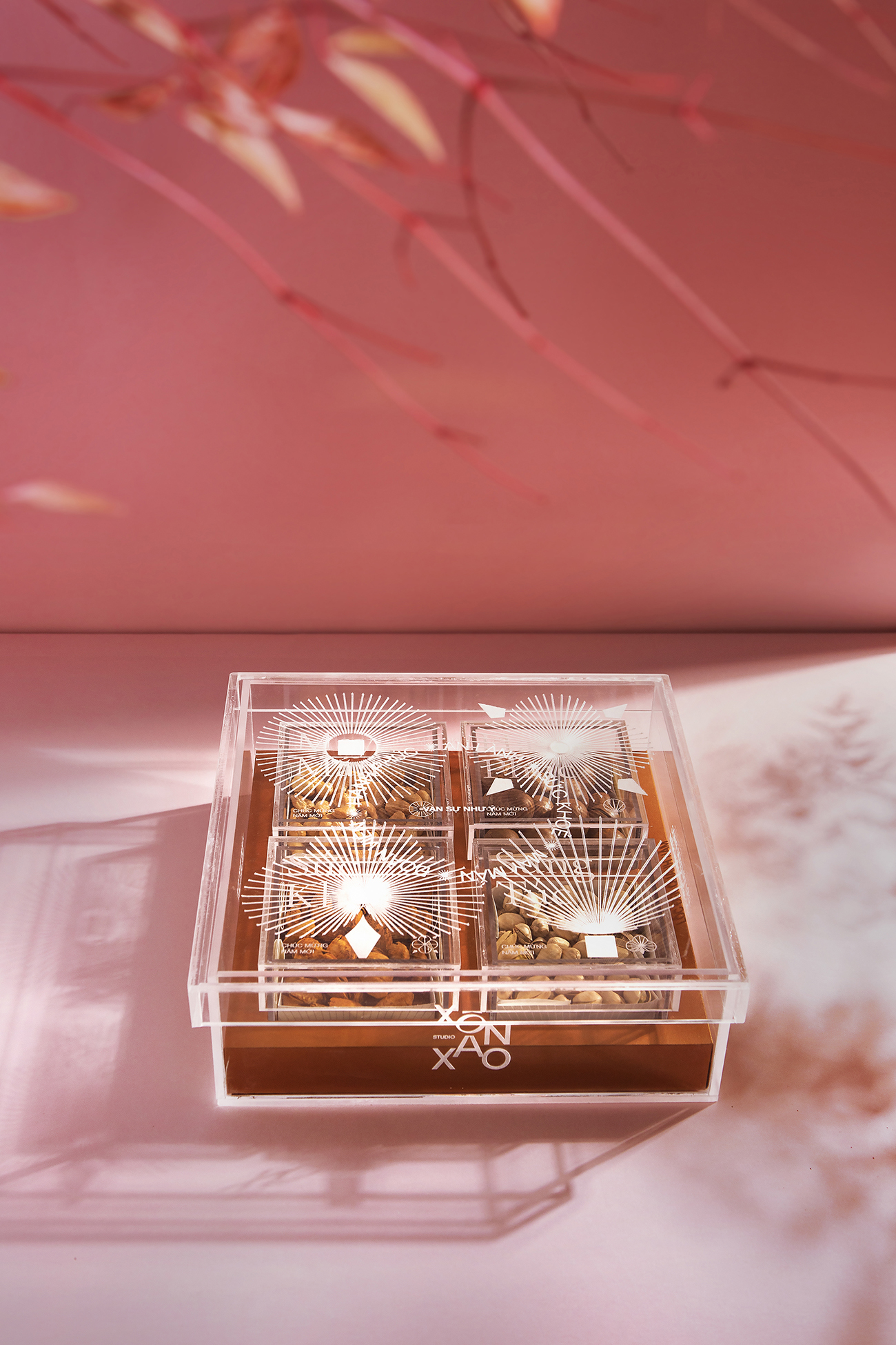 Theo truyền thống của người Việt Nam, việc có một hộp mứt để đãi khách và hoa bày quanh nhà là điều không thể thiếu trong mỗi gia đình Việt vào những ngày xuân, và đây cũng là ý tưởng chủ đạo cho hộp quà Tết này. Bằng việc sử dụng hình ảnh cách điệu hiện đại về hoa nở và lời chúc Tết làm họa tiết chính để thiết kế hộp quà, thay cho lời chúc hạnh phúc và may mắn. Ngoài ra, hộp quà này còn có giá trị cao cho sức khỏe, bên trong hộp được đặt bốn loại hạt (điều, maca, hạnh nhân và hạt dẻ cười) hoàn toàn tự nhiên và chứa nhiều chất dinh dưỡng.