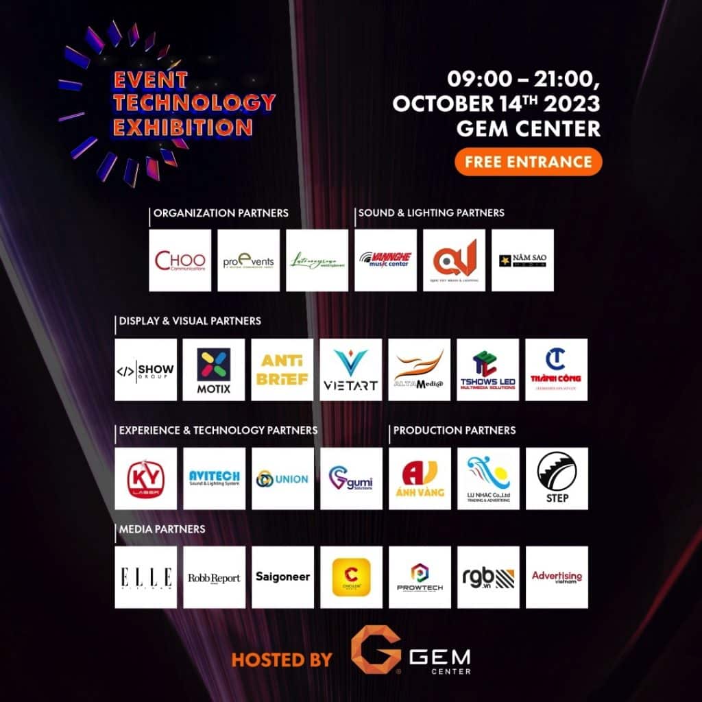 Với mong muốn mang đến cho các marketer, cộng đồng sáng tạo tại TP.HCM cơ hội được trực tiếp tìm hiểu và trải nghiệm những thiết bị công nghệ đặc sắc trong lĩnh vực này, GEM Center và các đơn vị uy tín trong ngành đã phối hợp cùng nhau để tạo nên Event Technology Exhibition – Triển lãm đầu tiên trong lĩnh vực tổ chức sự kiện tại Tp. HCM.