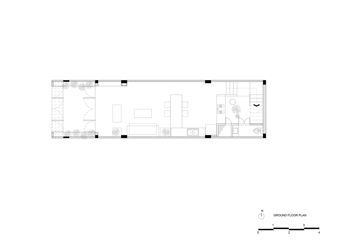 Những khu vườn nhỏ được sử dụng tương tự để ngăn cách nội thất và ngoại thất; nhà vệ sinh và phòng ngủ hoặc nhà bếp; các phòng ngủ và cầu thang. Giải pháp này tạo ra sự chuyển đổi không gian suôn sẻ trong khi đảm bảo tất cả các không gian chức năng đều tiếp xúc với thiên nhiên.