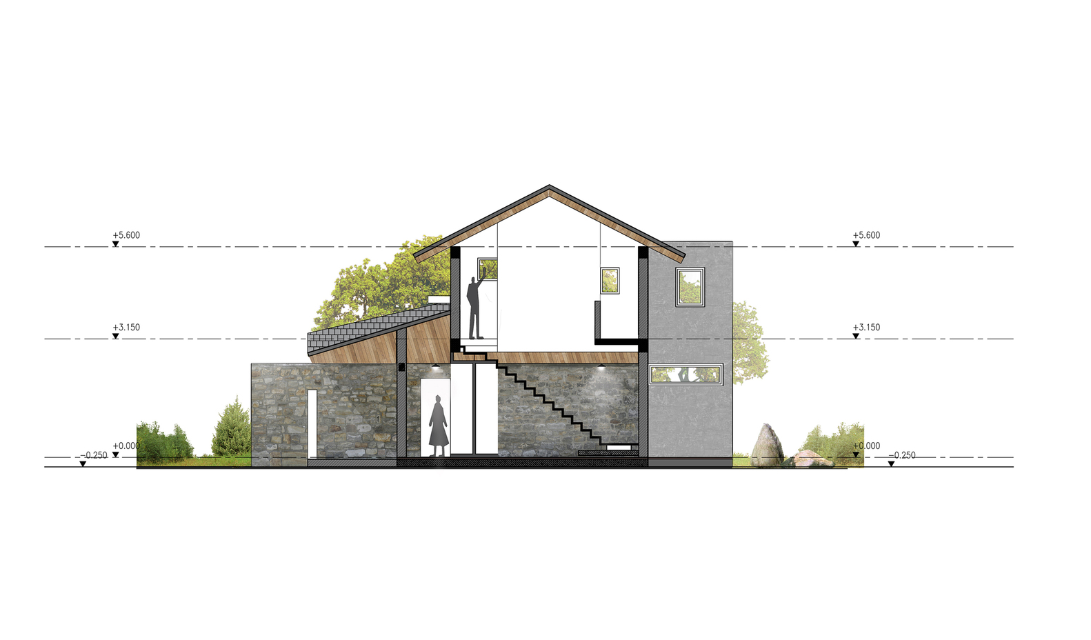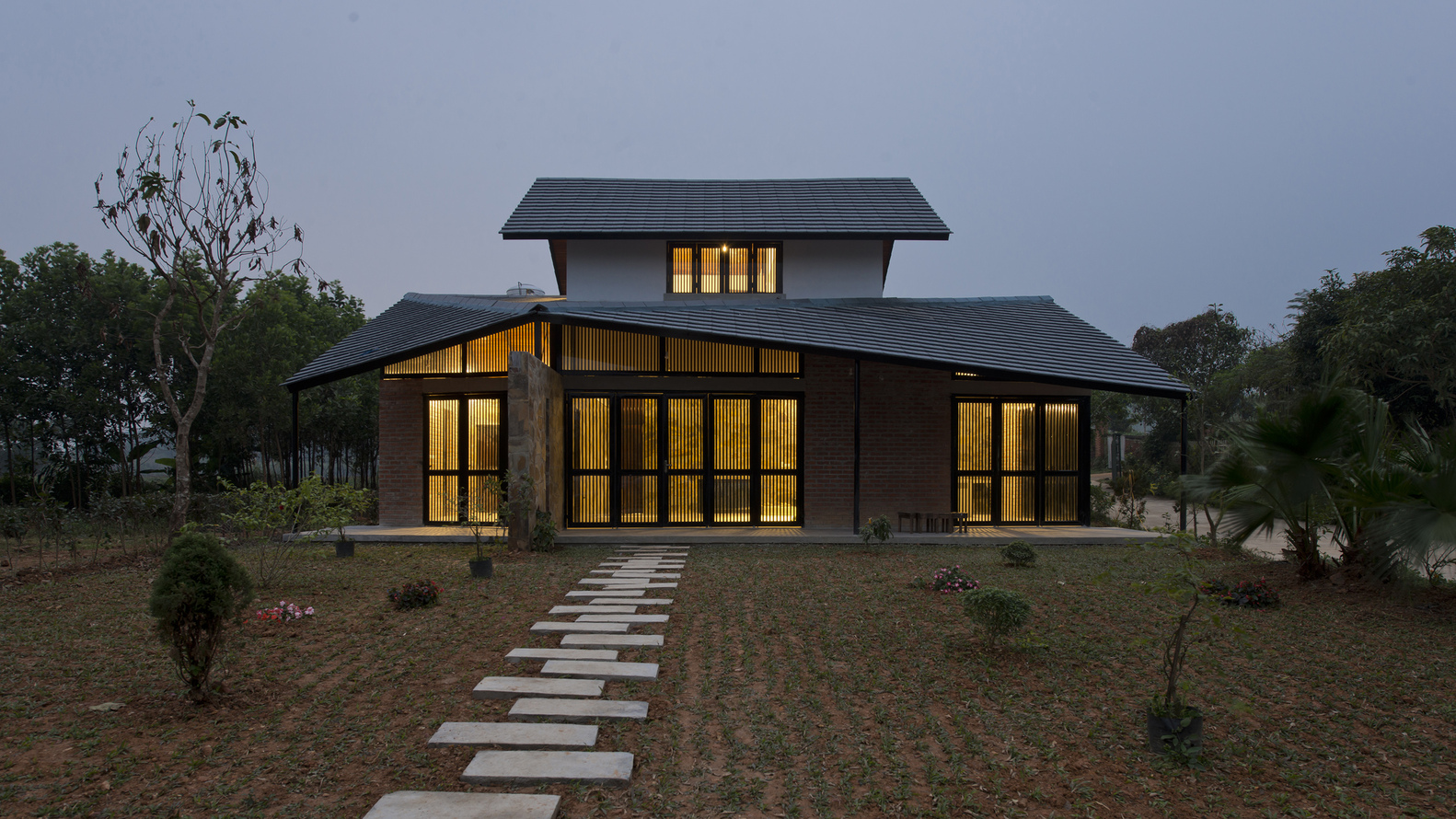 Quá trình thực hiện kéo dài trung bình 4 tháng sử dụng vật liệu địa phương và phương pháp kết cấu vừa phải để các nhà xây dựng địa phương có thể nhanh chóng làm quen sau khi đào tạo và nâng cao kỹ năng. Thoạt nhìn, hệ thống mái thái cao – thấp tạo nên một nếp gấp thú vị để xen kẽ những góc nhìn thông thường. Phần mái phía dưới mở rộng và che bóng cho sân thượng rộng, giúp giảm nhiệt độ trong nhà và chênh lệch nhiệt độ khi thời tiết nắng nóng.