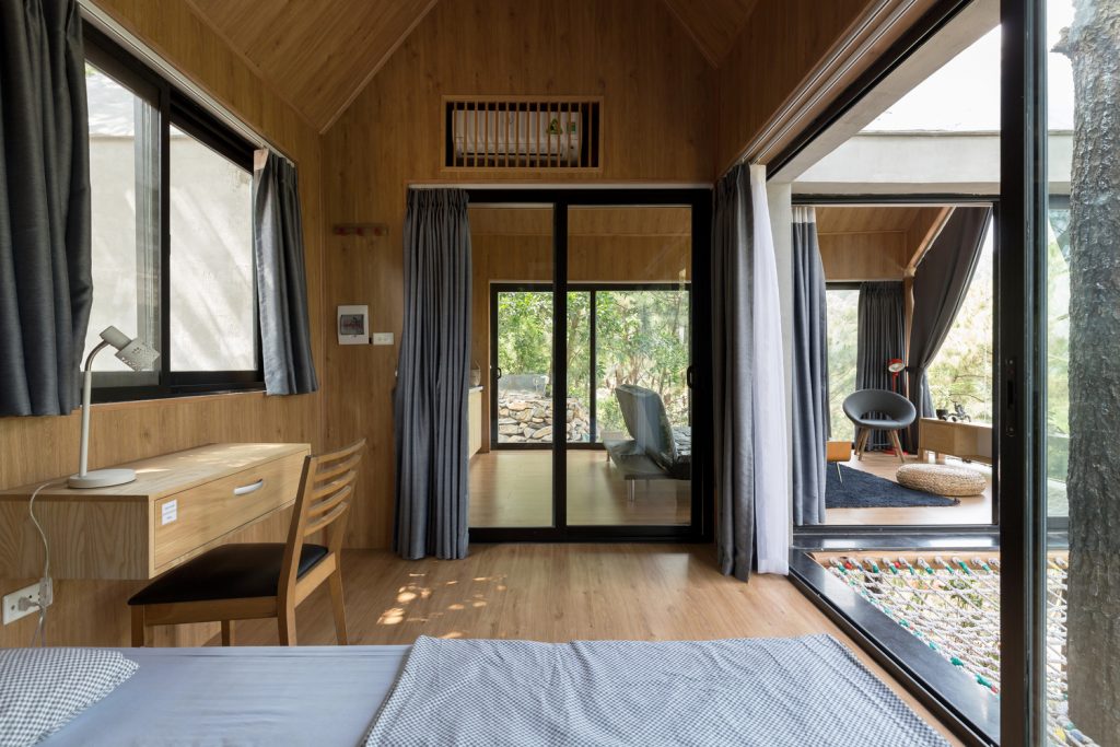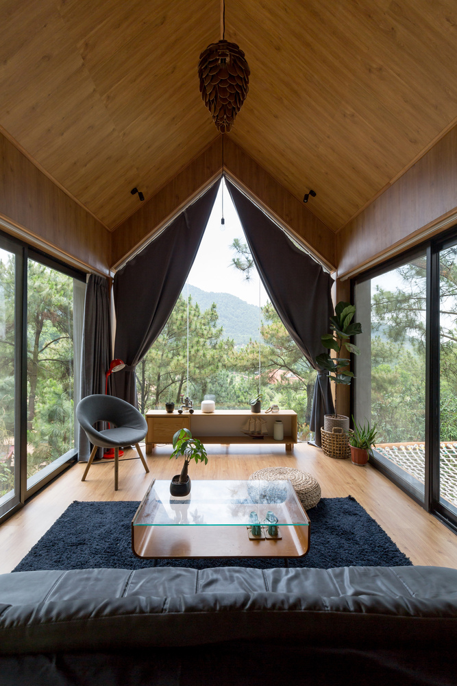 Tầm nhìn từ ngôi nhà gần như được giải phóng hoàn toàn, sự tương tác trong và ngoài nhà tối đa, mang lại cảm giác gần gũi với thiên nhiên.
