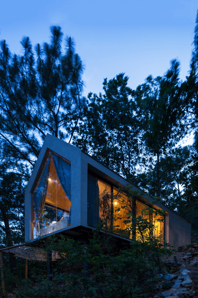 Ngôi nhà được thiết kế cho 2-4 người khi đến thăm vùng núi này. Sử dụng các vật liệu nhẹ như thép hộp, gỗ, kính, bê tông nhẹ, đá sét,… Forest House cố gắng giảm tải trọng của ngôi nhà, do đó làm giảm kết cấu của nền móng, nhờ đó không tác động quá nhiều đến môi trường tự nhiên xung quanh.