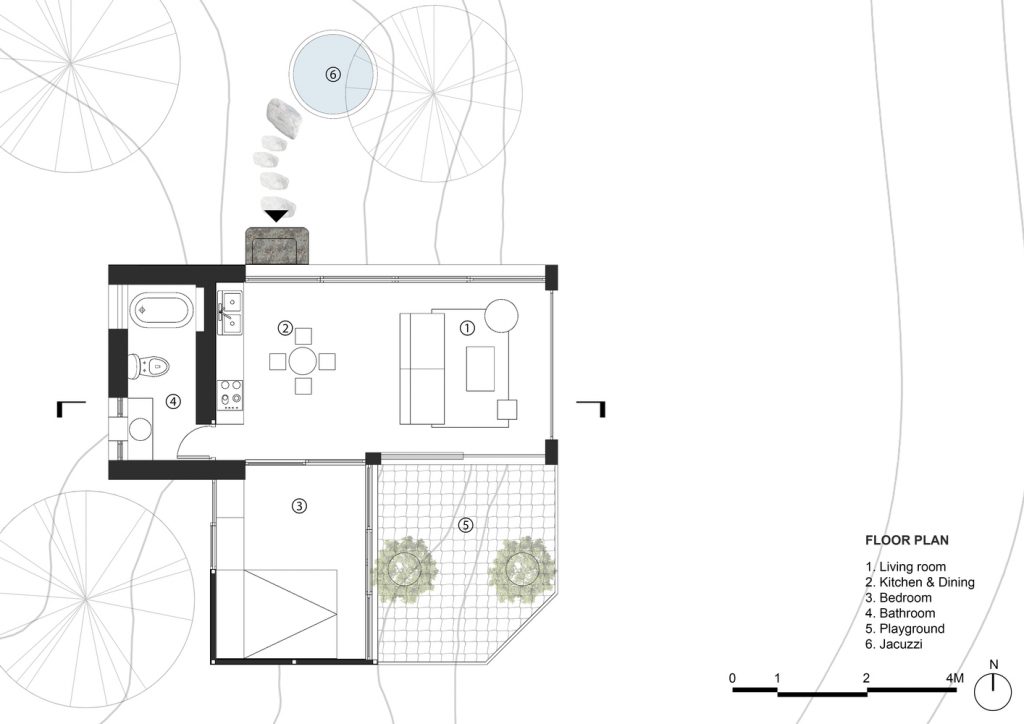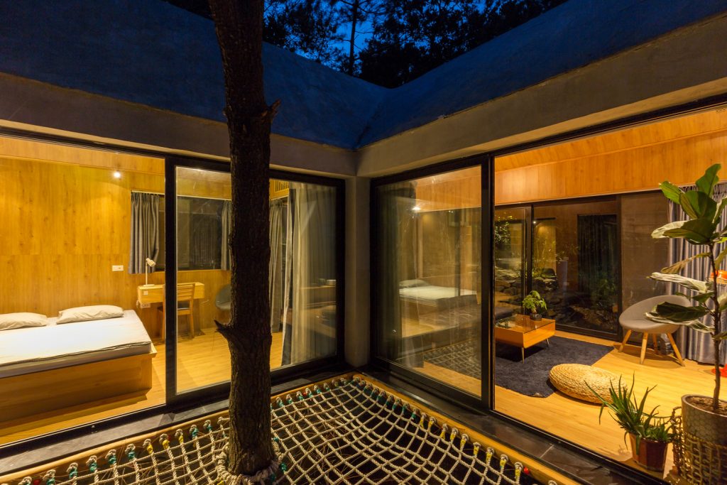 Việc xây dựng thường ảnh hưởng đến cây cối, nhưng với Forest House việc giữ lại hiện trạng thiên nhiên xung quanh rất được chú trọng. Thay vì chặt phá các cây sát nhà, Forest House tận dụng chúng bằng cách giăng lưới và biến không gian đó thành sân chơi ngoài trời rất thú vị.