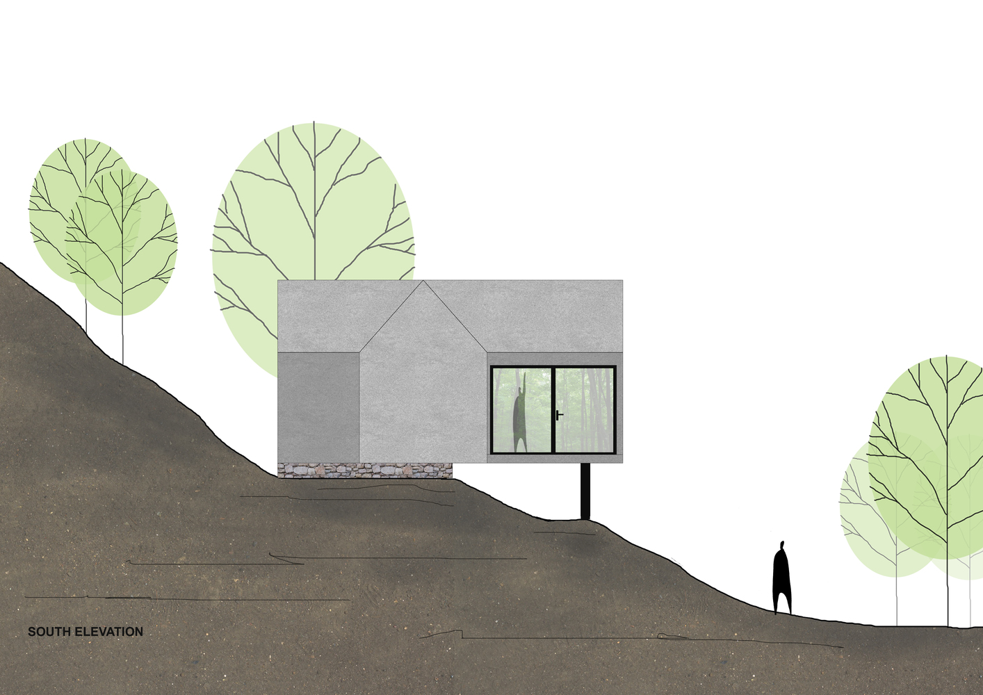 Ngôi nhà được thiết kế cho 2-4 người khi đến thăm vùng núi này. Sử dụng các vật liệu nhẹ như thép hộp, gỗ, kính, bê tông nhẹ, đá sét,… Forest House cố gắng giảm tải trọng của ngôi nhà, do đó làm giảm kết cấu của nền móng, nhờ đó không tác động quá nhiều đến môi trường tự nhiên xung quanh.