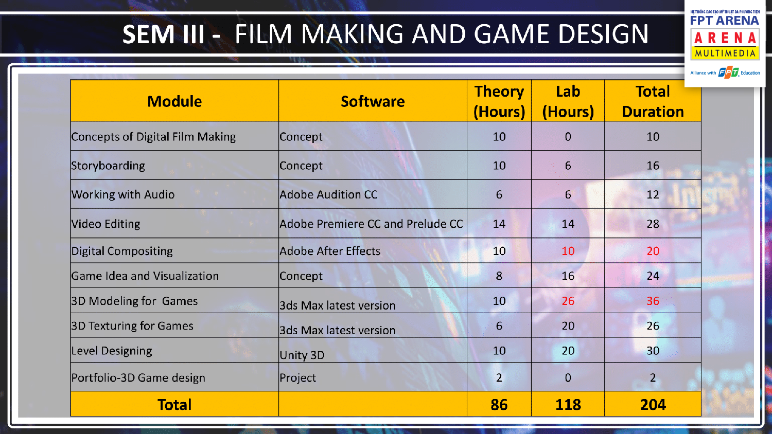 - Tăng thêm giờ thực hành cho mảng video và thiết kế game 3D