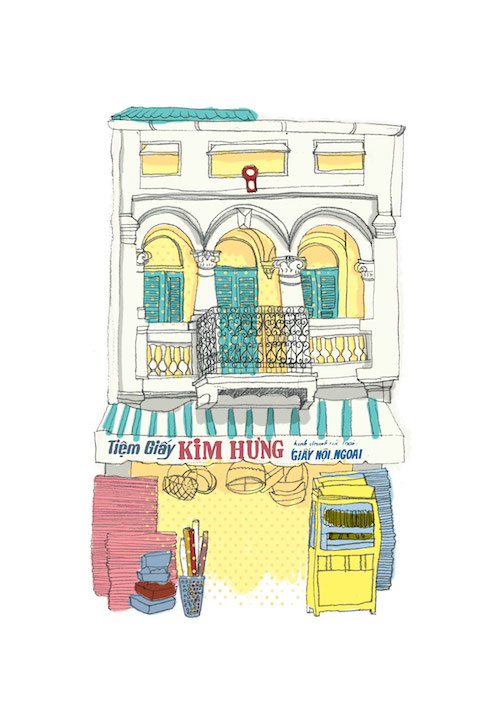 ” Tôi lưu lại những tấm hình chụp vào một chiếc camera nhỏ, phát thảo nó trên giấy và tô màu cho chúng. Đấy là cách đơn giản để gửi gắm tình cảm của mình với Saigon.”