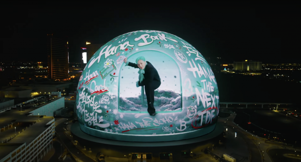 Mới đây, G-Dragon đã trở thành nghệ sĩ châu Á đầu tiên xuất hiện trên màn hình LED hình cầu lớn nhất thế giới – Sphere tại Las Vegas, địa điểm vốn thường dành cho những màn trình diễn hình ảnh với ngân sách khổng lồ. Đây là màn hợp tác của G-Dragon trong chiến dịch quảng cáo toàn cầu “One Spirit, One Team” của Hana Financial Group, không chỉ là một bước tiến trong lĩnh vực quảng cáo tài chính mà còn là sự kết hợp độc đáo giữa nghệ thuật, công nghệ và văn hóa đại chúng.