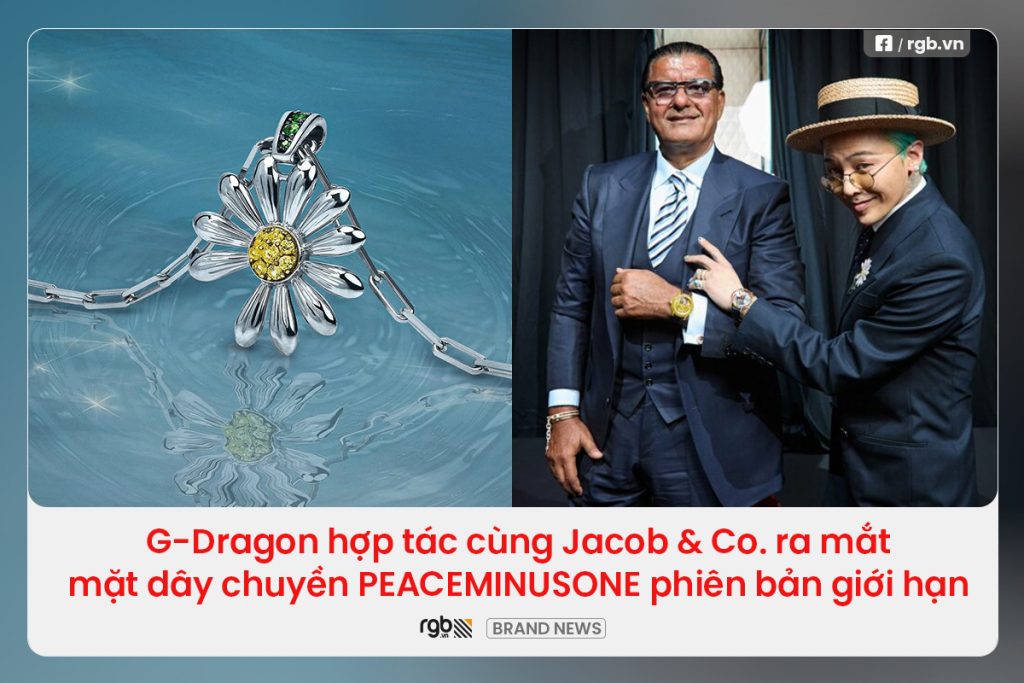Nghệ sĩ Hàn Quốc G-Dragon vừa bắt tay cùng nhà kim hoàn cao cấp Jacob & Co. để giới thiệu một mặt dây chuyền phiên bản giới hạn, lấy cảm hứng từ biểu tượng PEACEMINUSONE trứ danh của anh. Bộ sưu tập được ra mắt vào tháng 6 năm 2025, là sự hòa quyện giữa tay nghề chế tác tinh xảo của Jacob & Co. và biểu tượng bông cúc – hình ảnh gắn liền với cá tính nghệ thuật lẫn phong cách cá nhân của G-Dragon.