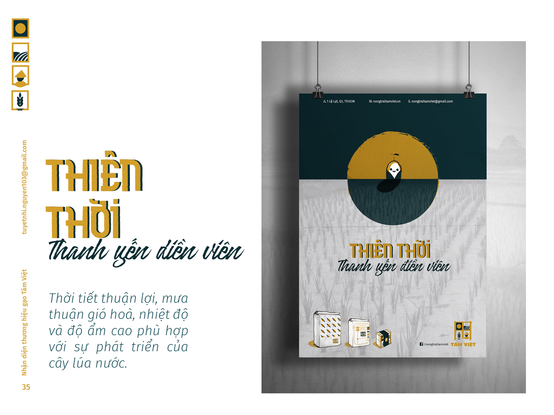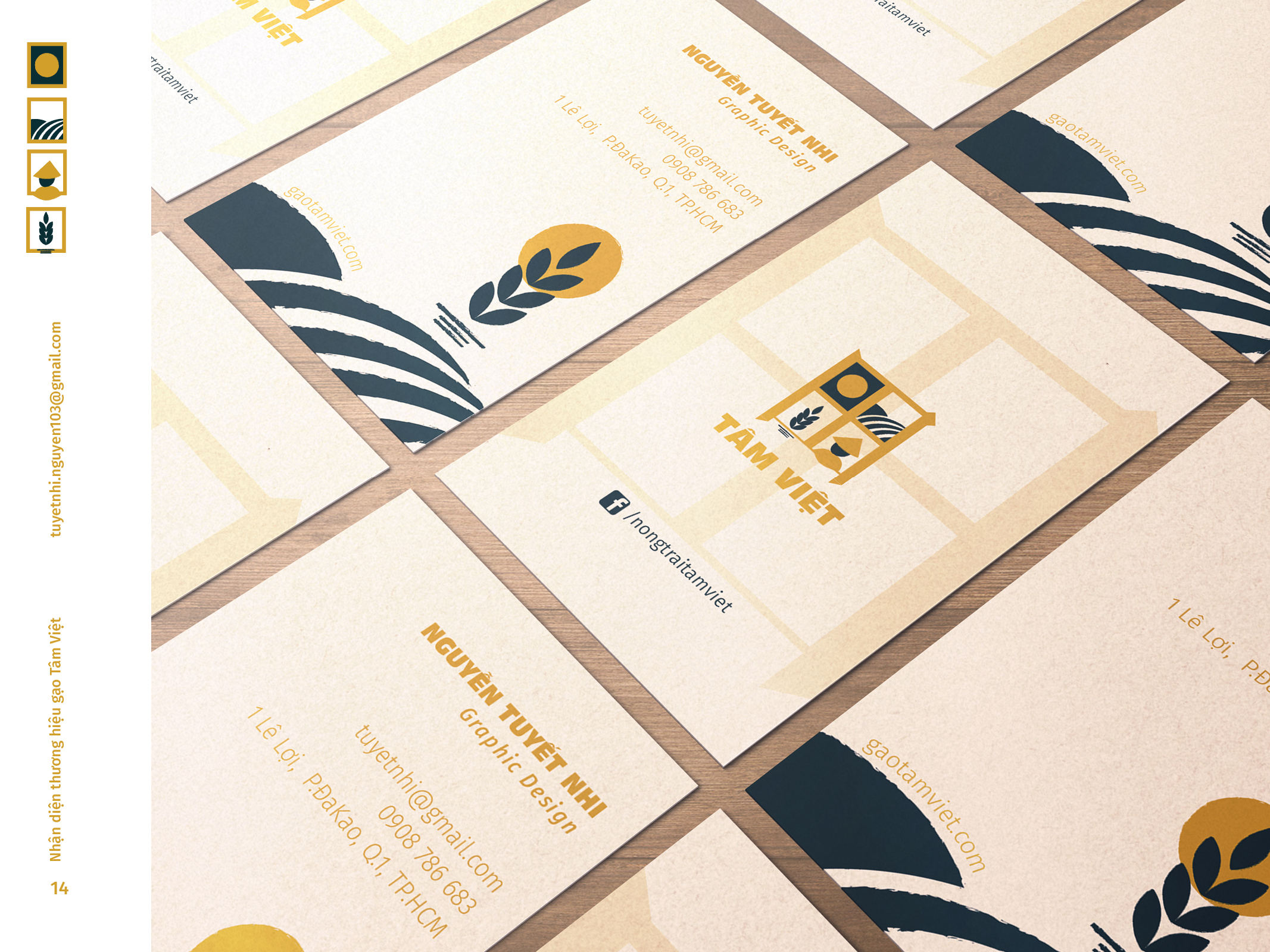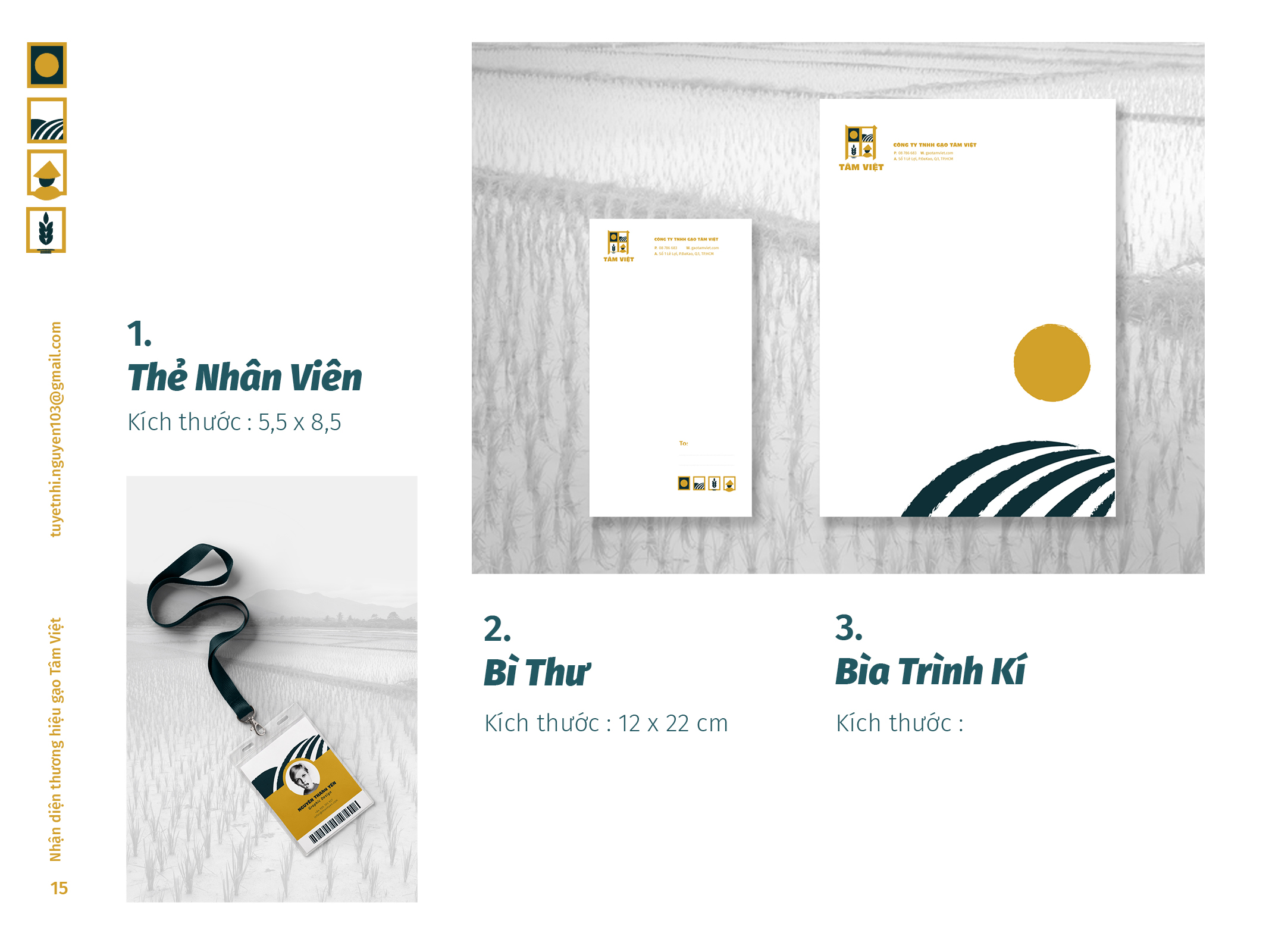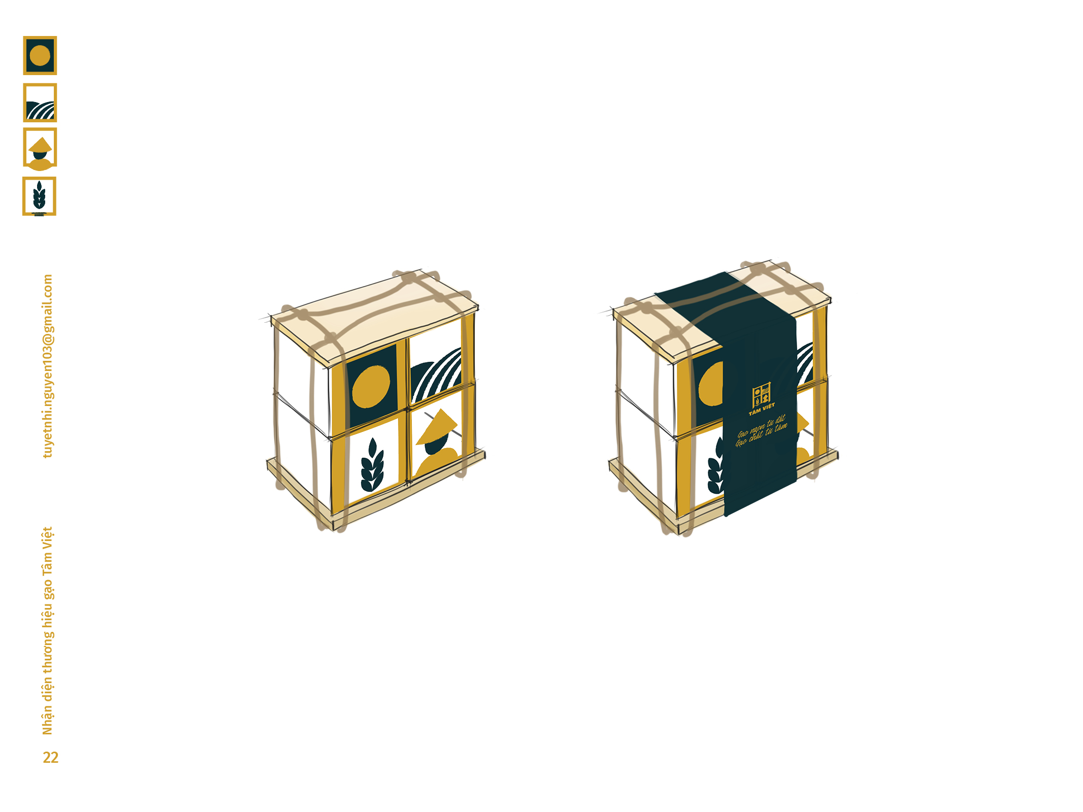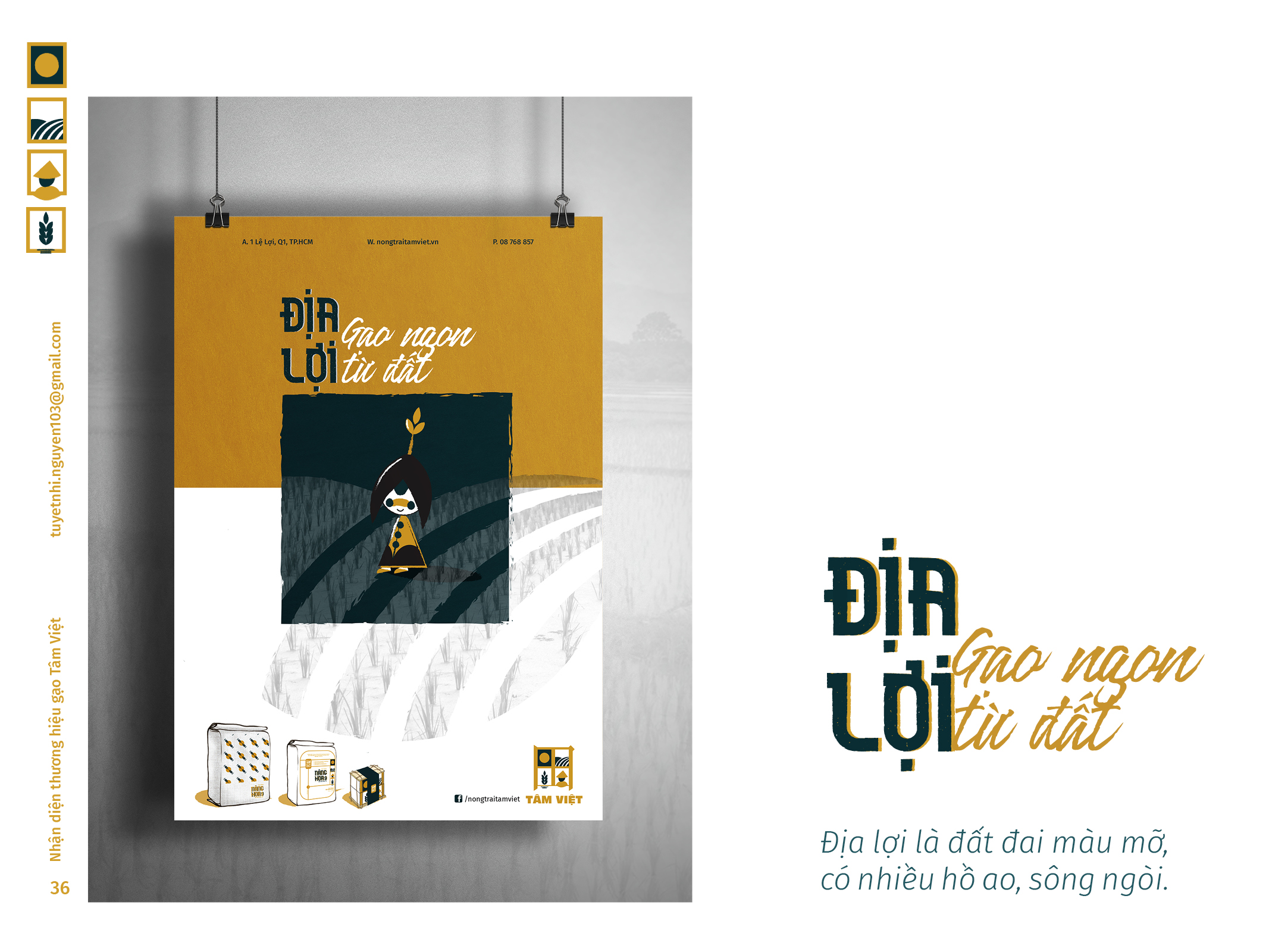 Gạo Tâm Việt là một loại gạo được canh tác theo phương thức truyền thống từ ngàn đời nay. Với niềm tự hào về các sản phẩm thuần tuý Việt Nam, Nhi đã đem nó vào trong đồ án tốt nghiệp của mình, xây dựng nên một cái nhìn mới về thương hiệu Việt. Bên cạnh thiết kế bắt mắt, chỉnh chu. Nhi còn chú trọng về câu chuyện thương hiệu và công năng mà thiết kế mang lại. Đồng thời, chất liệu mà Nhi sử dụng để thiết kế cho bao bì thì vô cùng thân thiện với môi trường. Tổng hòa tạo nên một đồ án xuất sắc và giúp Nhi trở thành thủ khoa chuyên ngành Thiết Kế Đồ Họa của ĐH Tôn Đức Thắng.