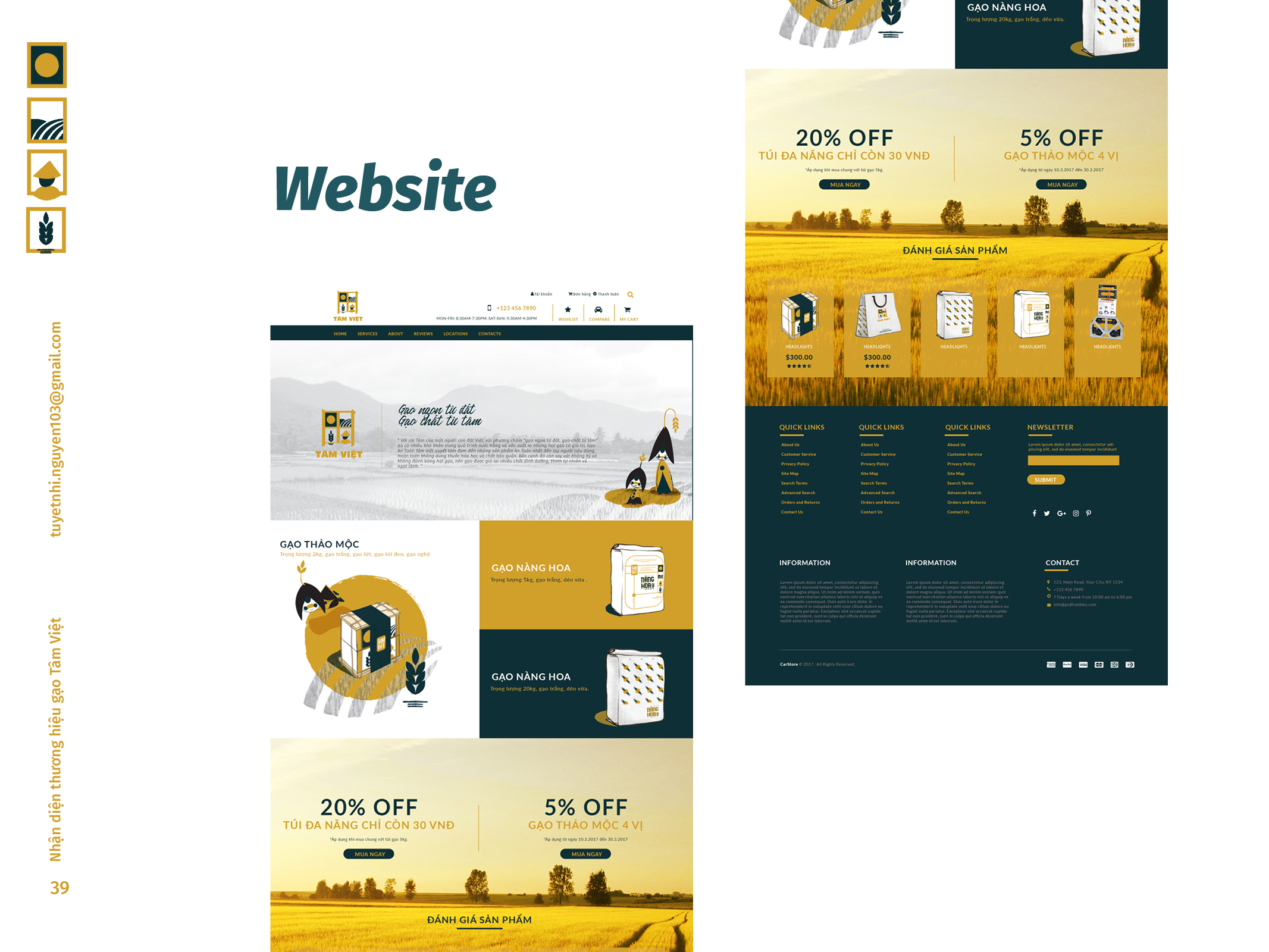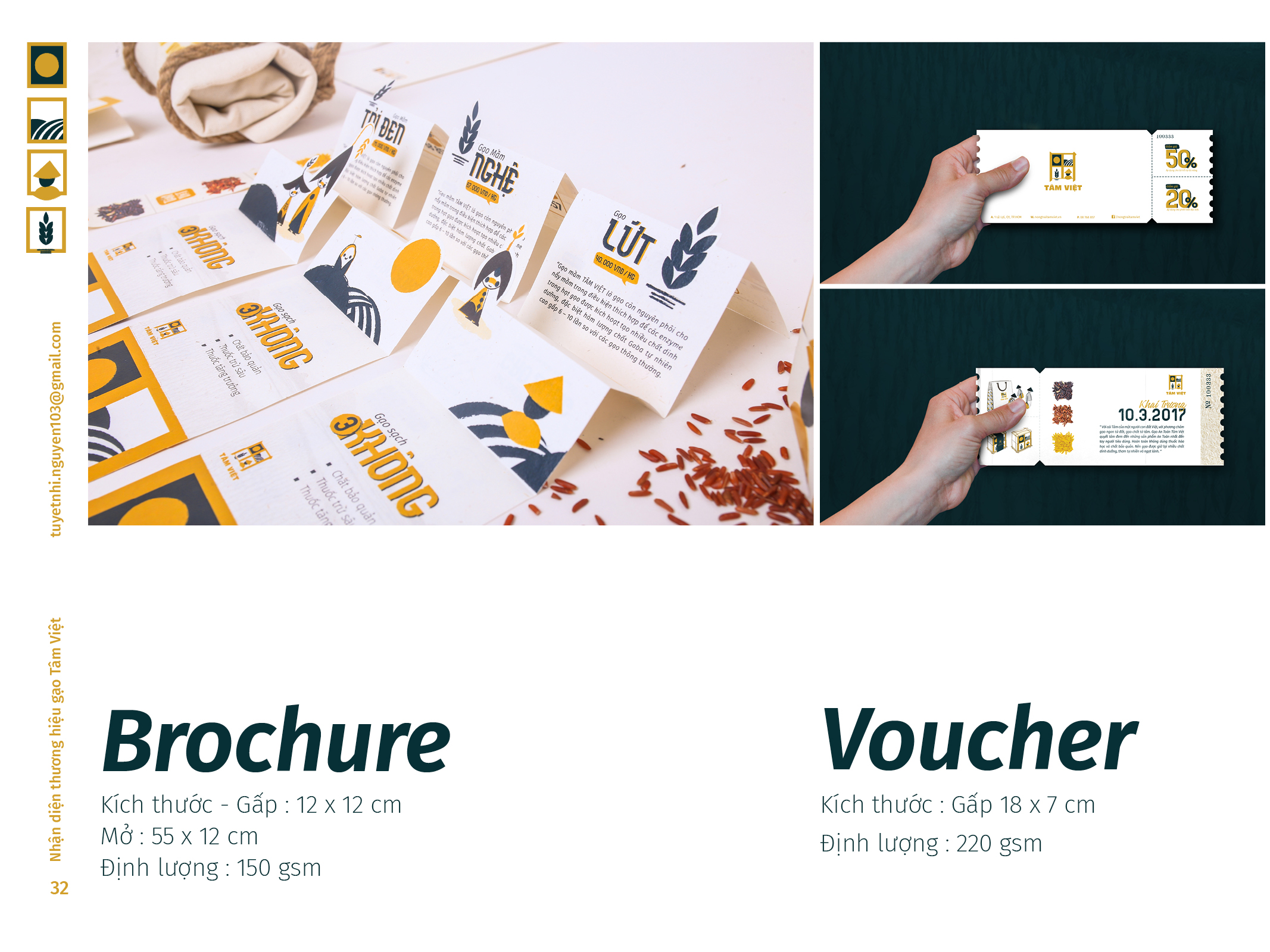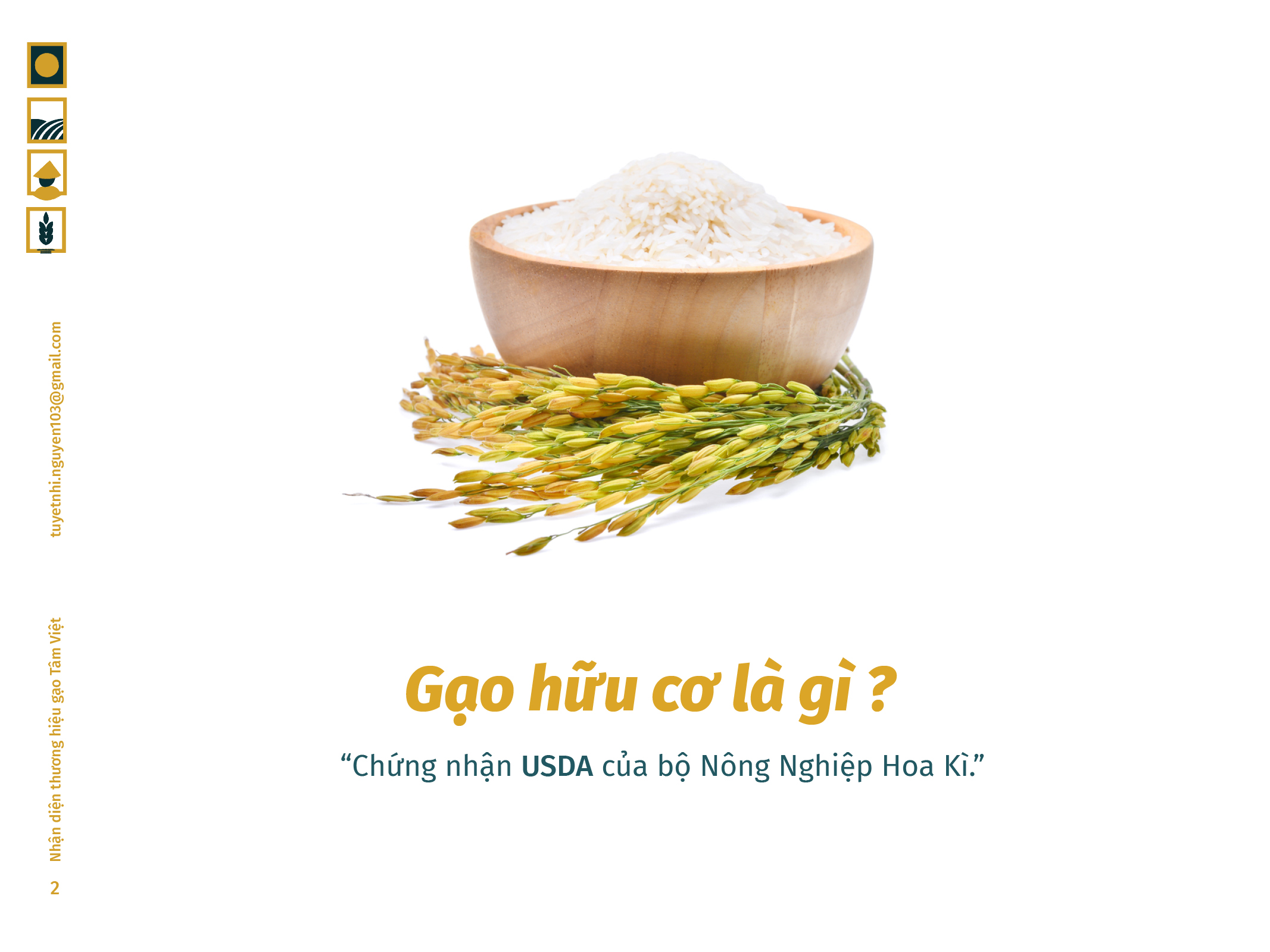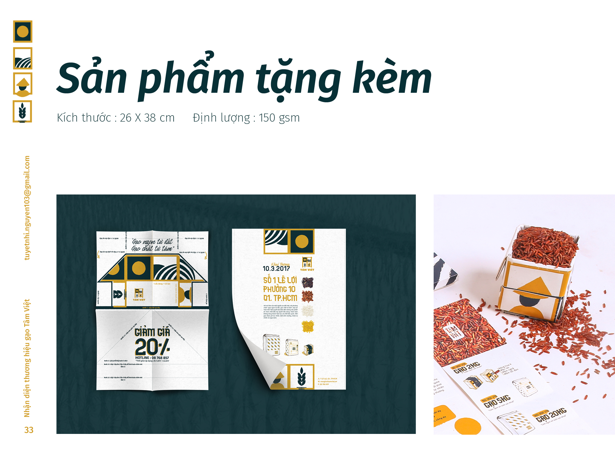 Gạo Tâm Việt là một loại gạo được canh tác theo phương thức truyền thống từ ngàn đời nay. Với niềm tự hào về các sản phẩm thuần tuý Việt Nam, Nhi đã đem nó vào trong đồ án tốt nghiệp của mình, xây dựng nên một cái nhìn mới về thương hiệu Việt. Bên cạnh thiết kế bắt mắt, chỉnh chu. Nhi còn chú trọng về câu chuyện thương hiệu và công năng mà thiết kế mang lại. Đồng thời, chất liệu mà Nhi sử dụng để thiết kế cho bao bì thì vô cùng thân thiện với môi trường. Tổng hòa tạo nên một đồ án xuất sắc và giúp Nhi trở thành thủ khoa chuyên ngành Thiết Kế Đồ Họa của ĐH Tôn Đức Thắng.