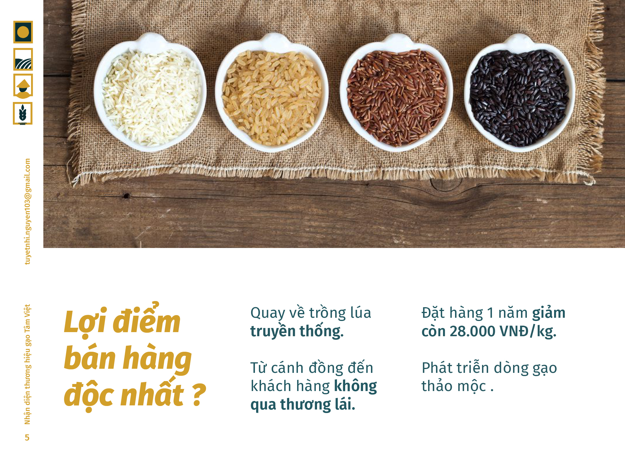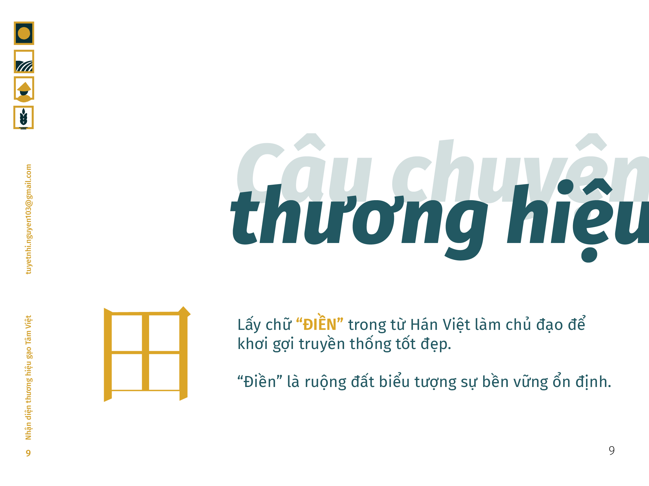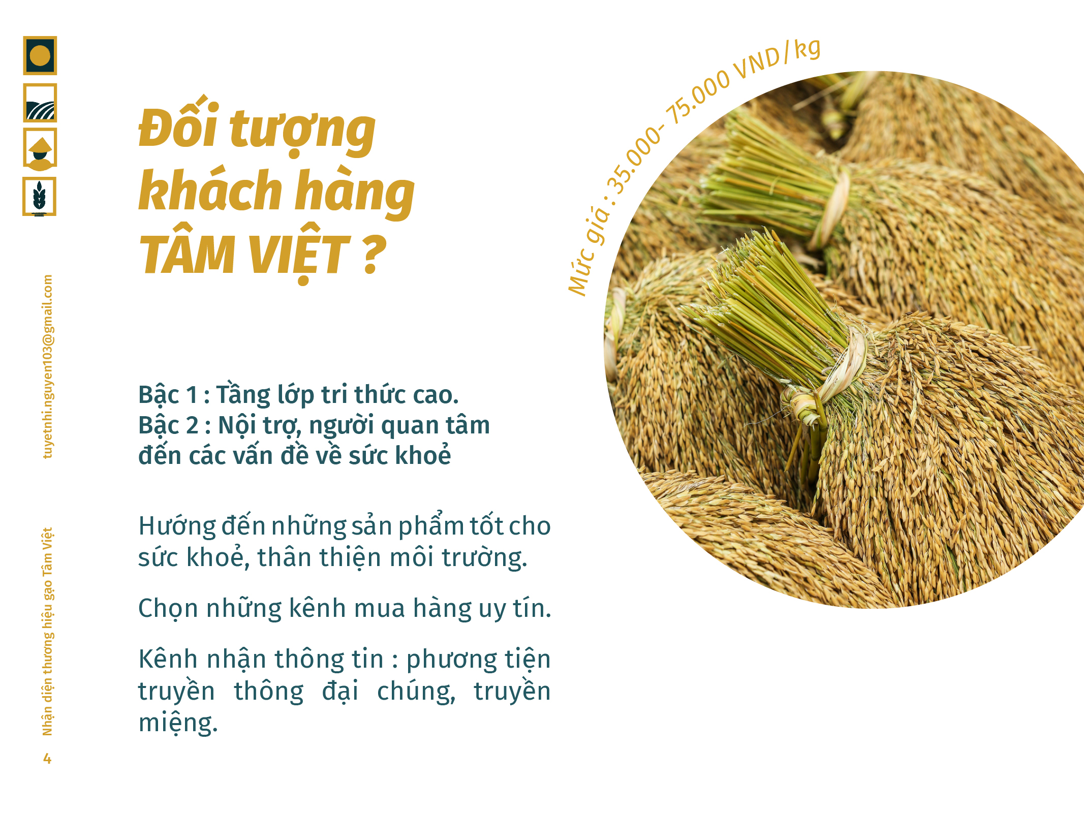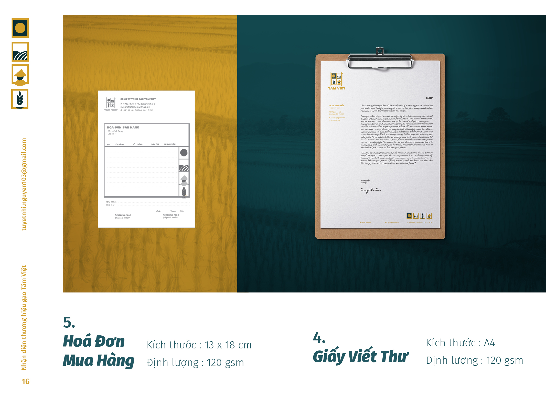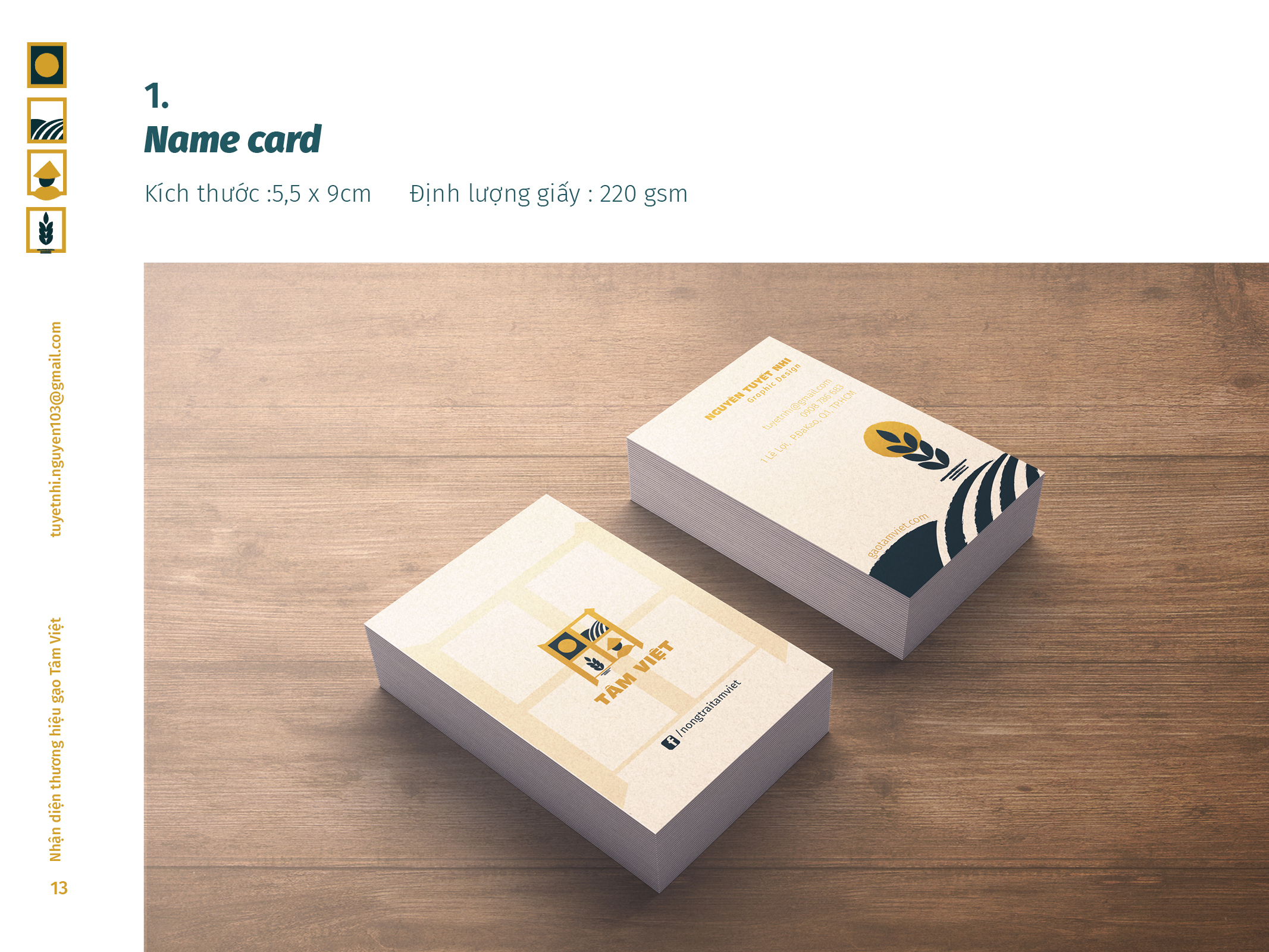 Gạo Tâm Việt là một loại gạo được canh tác theo phương thức truyền thống từ ngàn đời nay. Với niềm tự hào về các sản phẩm thuần tuý Việt Nam, Nhi đã đem nó vào trong đồ án tốt nghiệp của mình, xây dựng nên một cái nhìn mới về thương hiệu Việt. Bên cạnh thiết kế bắt mắt, chỉnh chu. Nhi còn chú trọng về câu chuyện thương hiệu và công năng mà thiết kế mang lại. Đồng thời, chất liệu mà Nhi sử dụng để thiết kế cho bao bì thì vô cùng thân thiện với môi trường. Tổng hòa tạo nên một đồ án xuất sắc và giúp Nhi trở thành thủ khoa chuyên ngành Thiết Kế Đồ Họa của ĐH Tôn Đức Thắng.